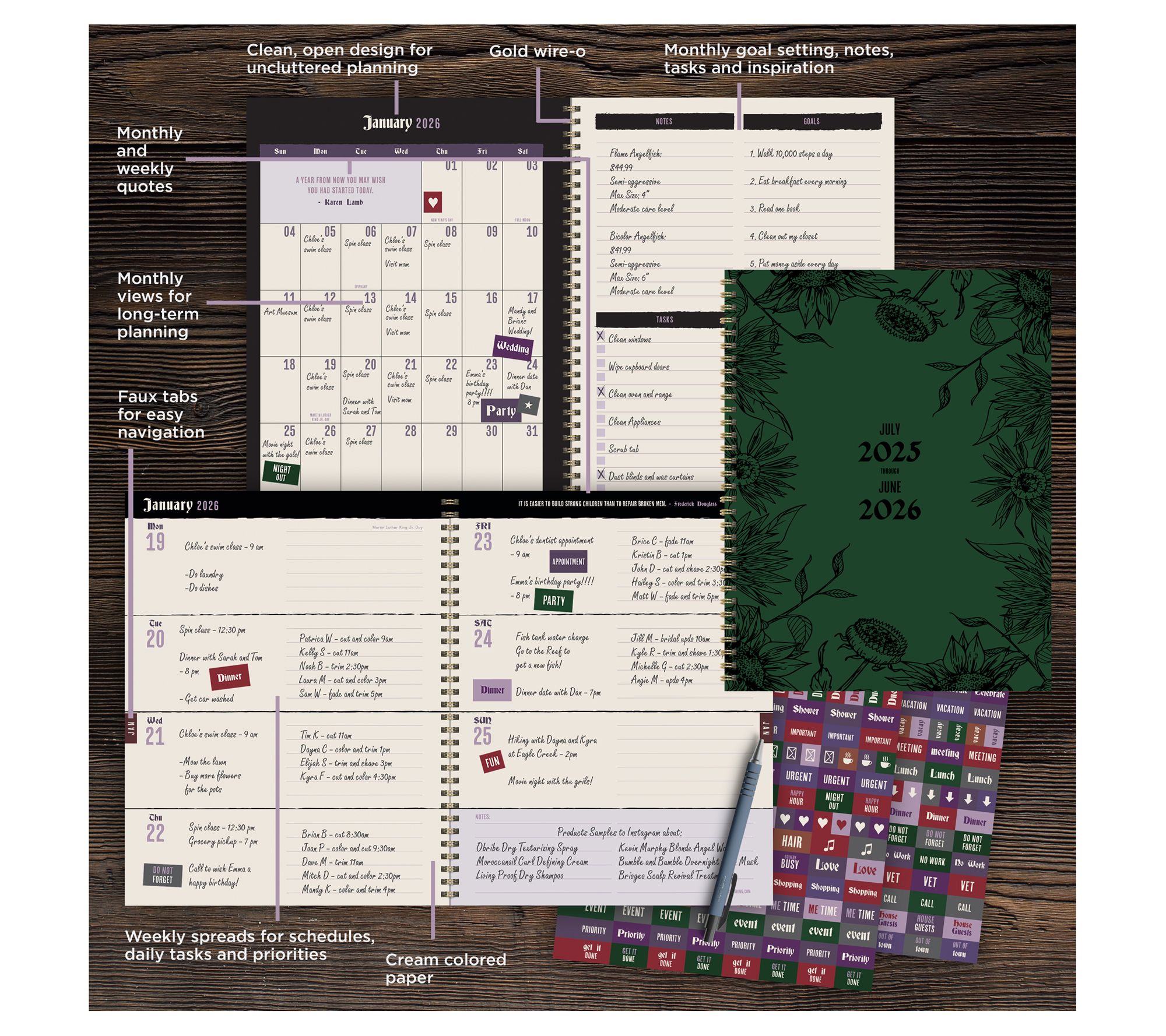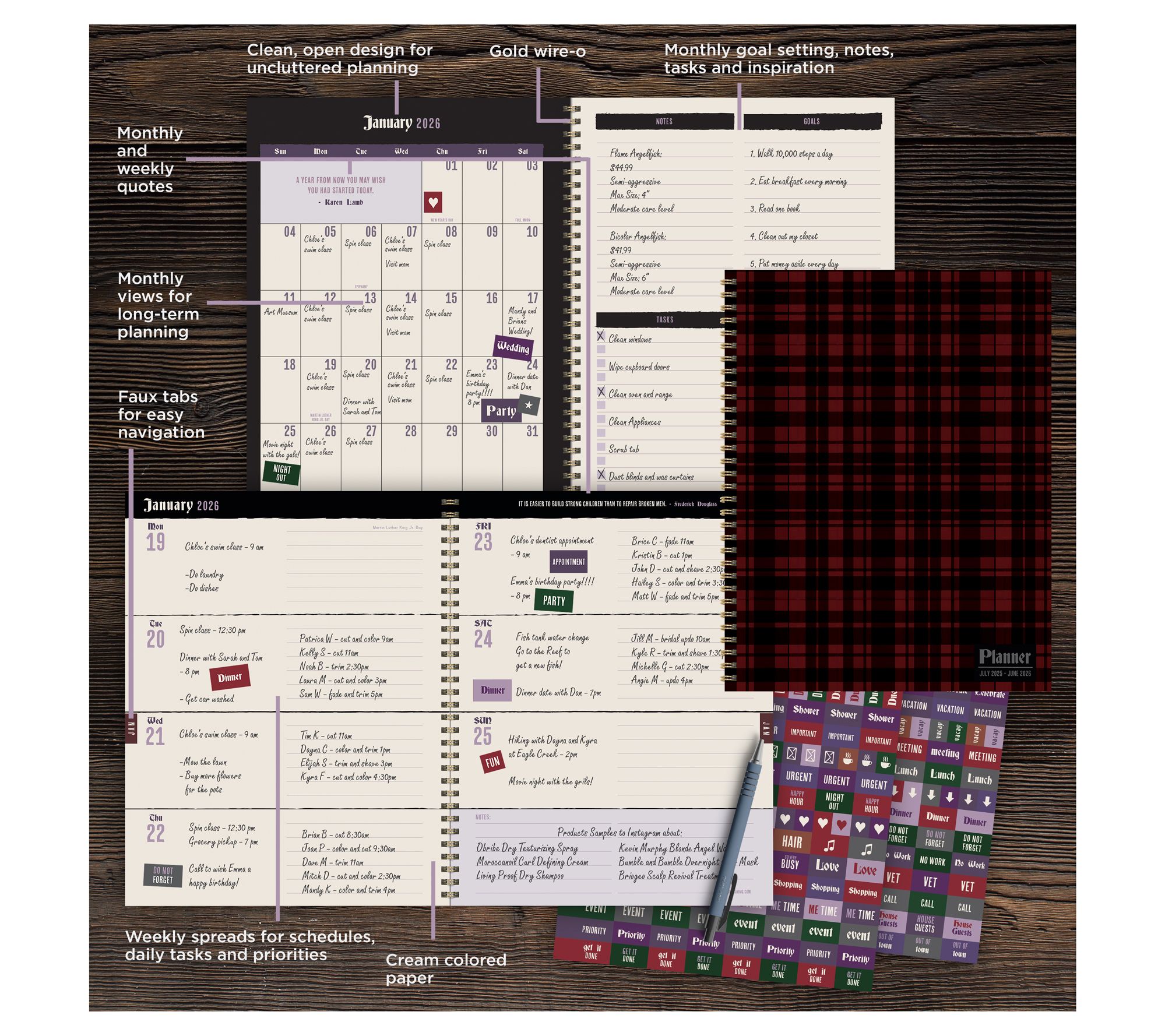 • Large weekly/monthly planner