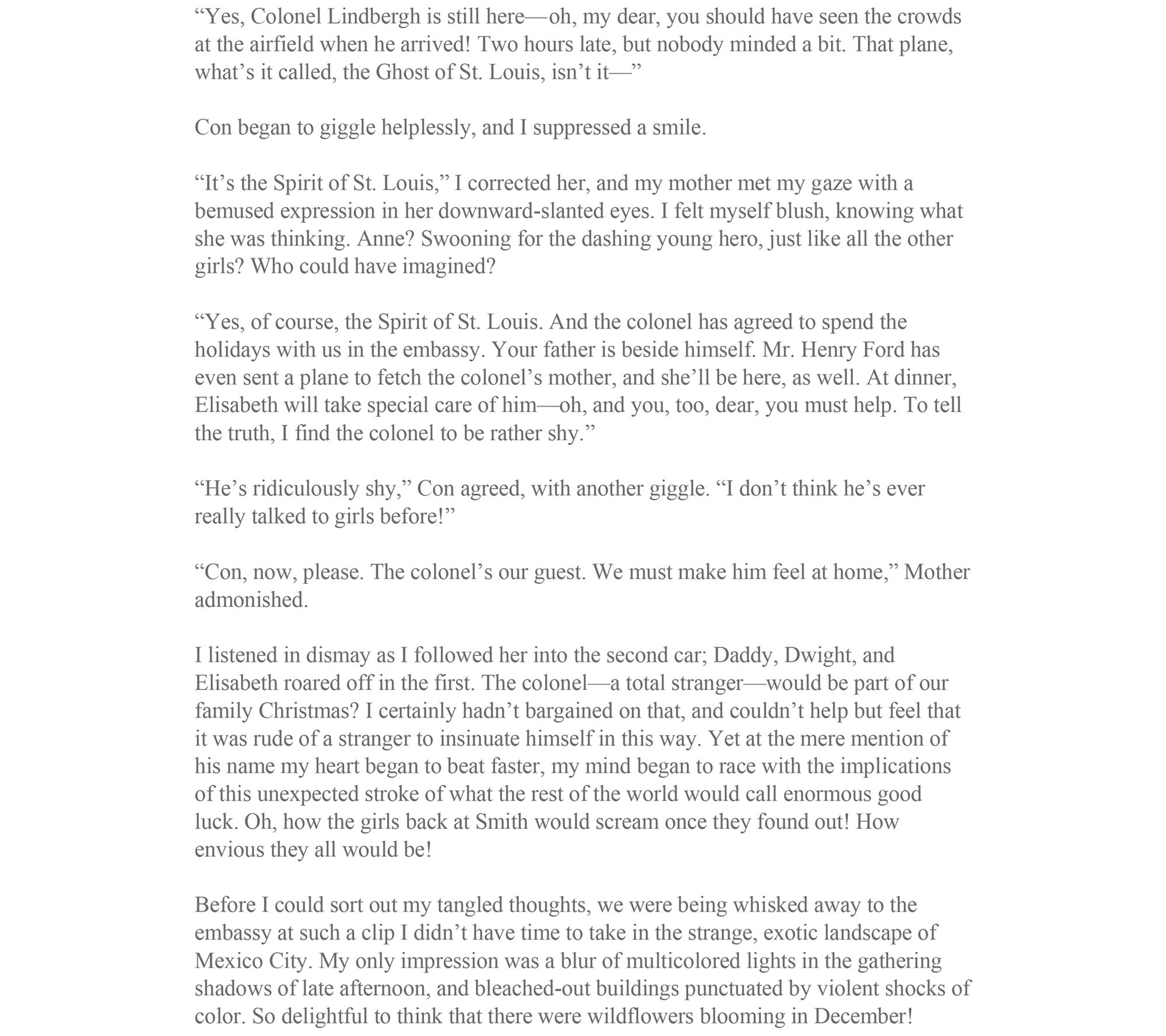 Pull back the curtain one of America's most extraordinary couples -- Charles and Anne Morrow Lindbergh. When Anne meets Colonel Lindbergh, fresh off his 1927 solo flight across the Atlantic, she's enthralled by him, and he sees her as a kindred spirit. Once wed, she realizes that the life she once longed for will bring heartbreak, pushing her to reconcile her need for love and her desire for independence. It's time for her to embrace life's infinite possibilities for change and happiness.