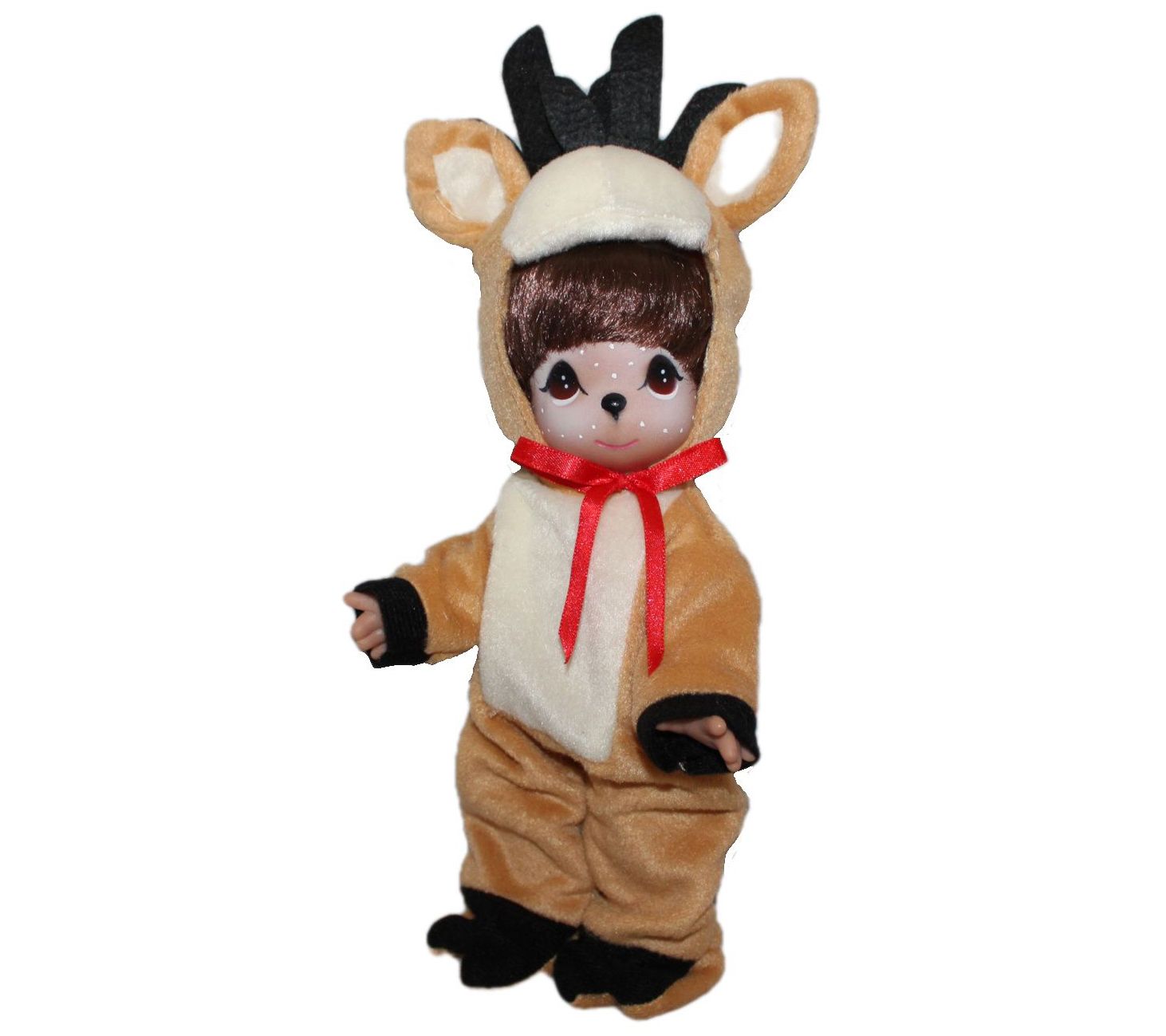 A charming addition to any collection, this "You're a Dear Deer" doll peeks out from her sweet, soft deer costume. From The Doll Maker.