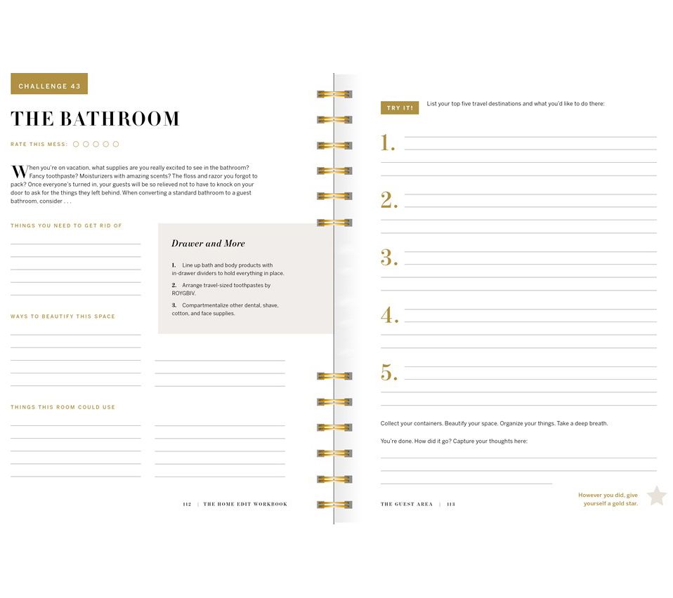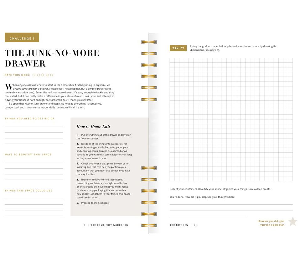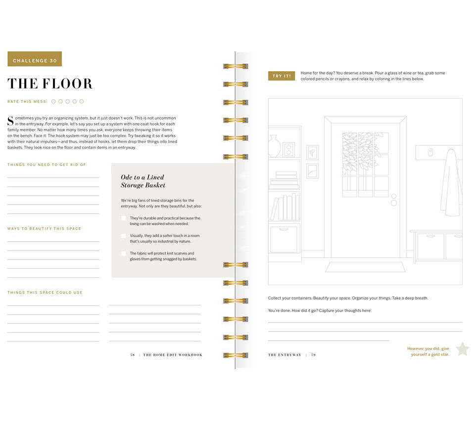 Need a little help getting organized? The Home Edit Workbook by Clea Shearer delivers fun and motivational activities to help you get your house in shape. From the stars of the Netflix series Get Organized with The Home Edit, this book features 52 challenges for every room, spaces for writing lists, writing prompts, tips and tricks, and gold star stickers to reward your efforts.