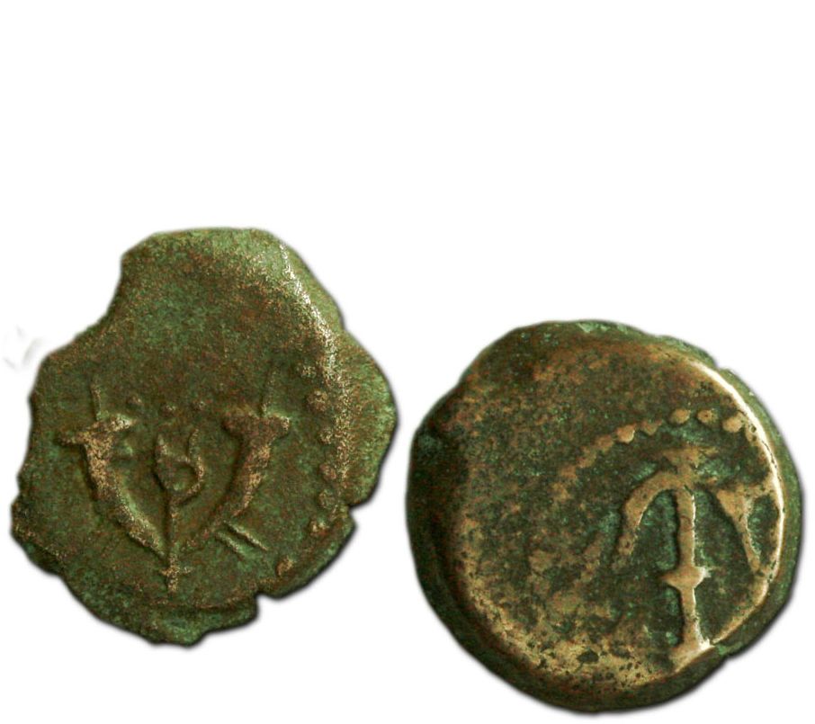 • Herod Archelaus, Judea bronze prutah; 23 BCE to 18th CE; 0.8 to 1.8g, 12 to 14.5mm diameter