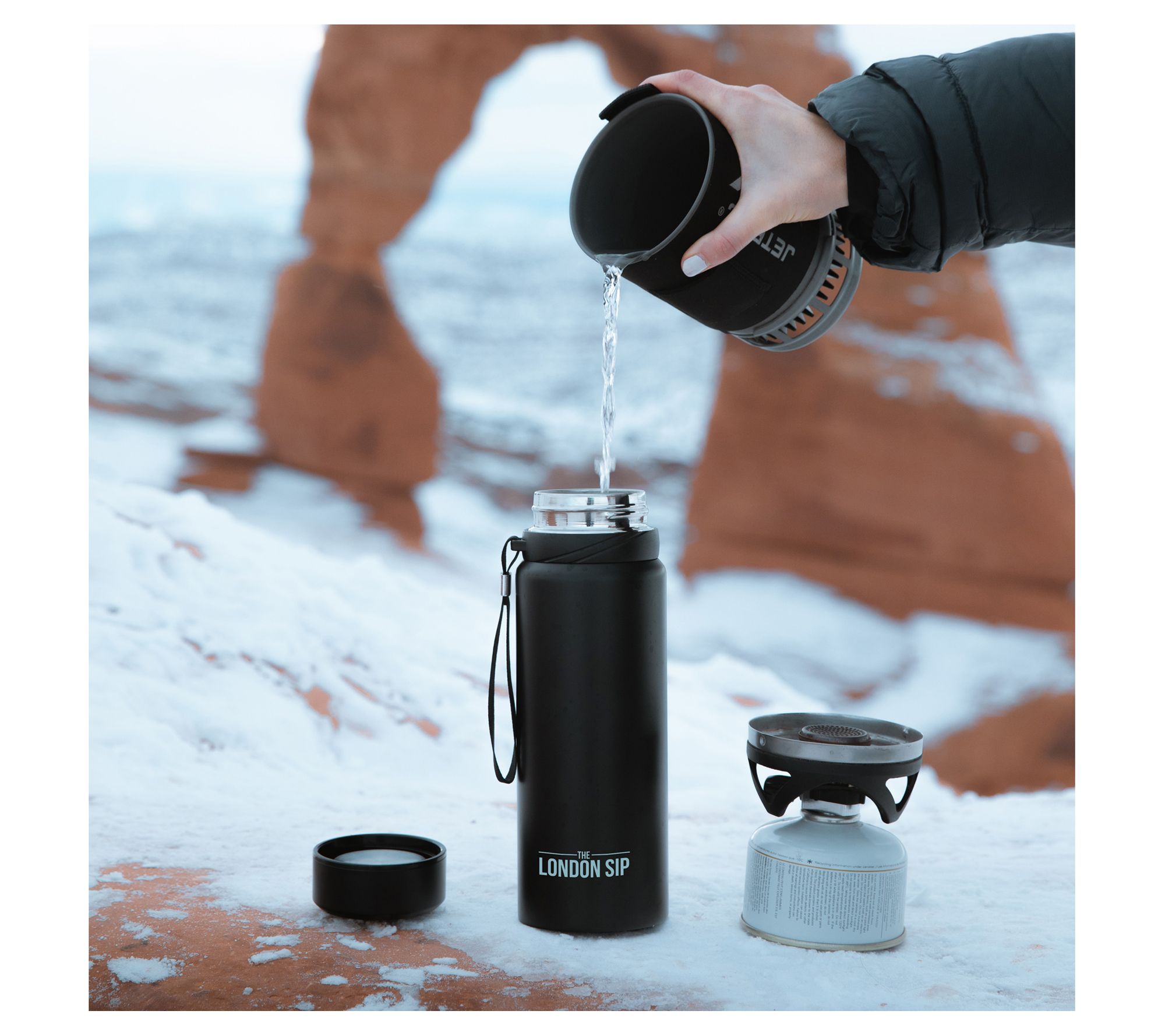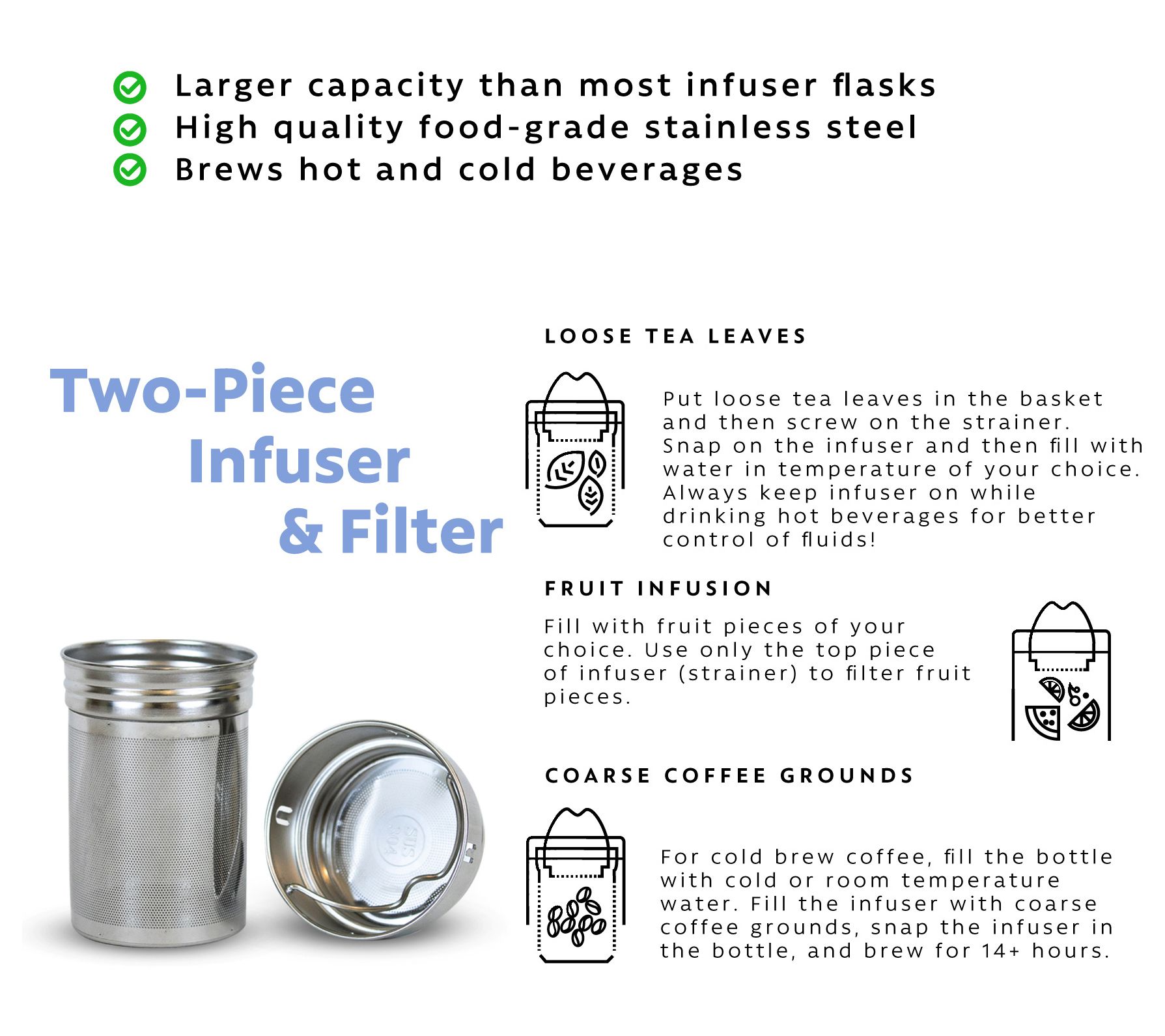 Enjoy tea and fruit-infused water on the go with The London Sip tea infuser bottle. Simply add loose leaf tea, coffee, or fruit to the two-piece infuser system, add water, and start your day. Take it with you on outdoor adventures, the nylon carry strap makes it easy to transport. From The London Sip.