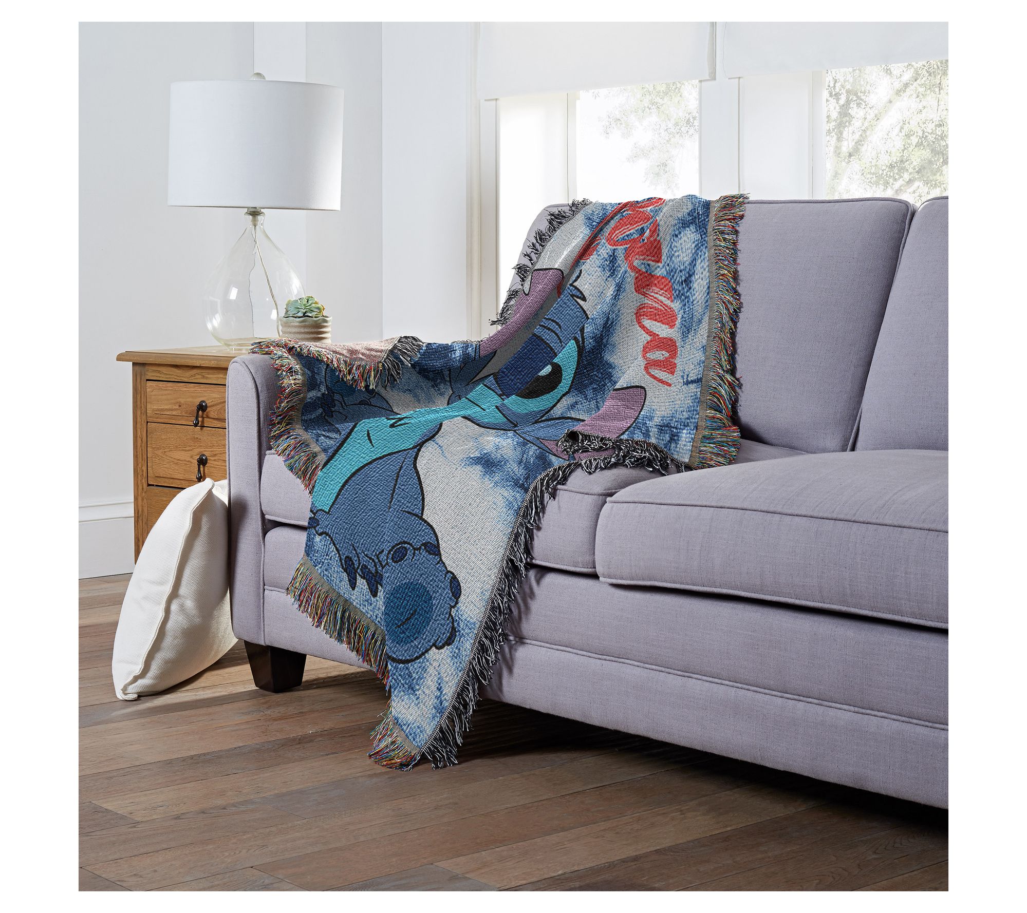 Transform any room in your home with this Disney Lilo & Stitch woven tapestry. Whether draped over your sofa or hung on your wall, it brings a playful and heartwarming touch to your decor. The vivid tie-dye design featuring Stitch and the word "Ohana" adds vibrant color to your space. From The Northwest Group.