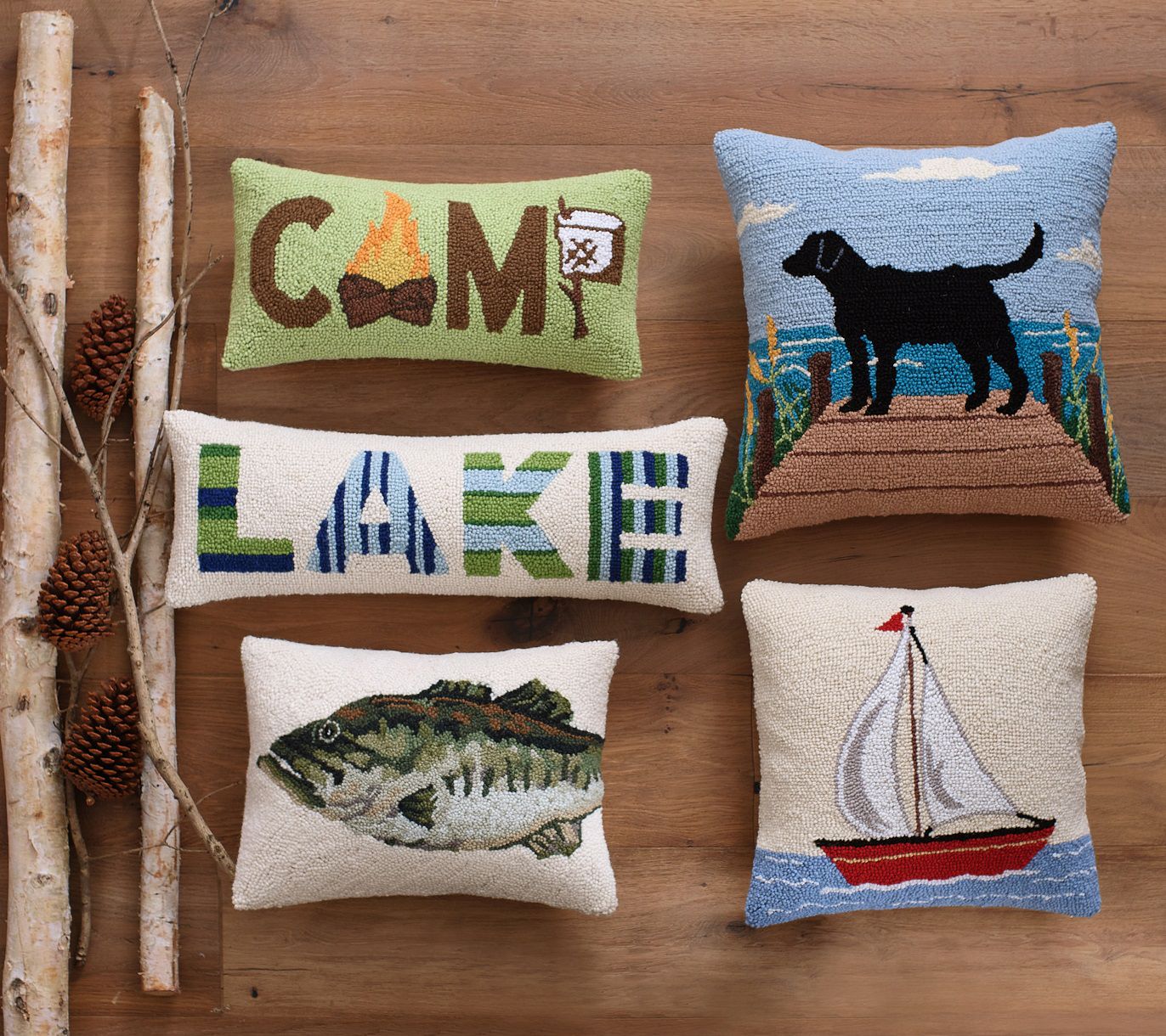 Add a nautical touch to your home with this charming pillow, perfect for coastal or lake-themed spaces. Its classic sailboat motif, hand-hooked wool face, and soft polyester velvet back make it both stylish and comfortable. From The Pillow Shoppe.