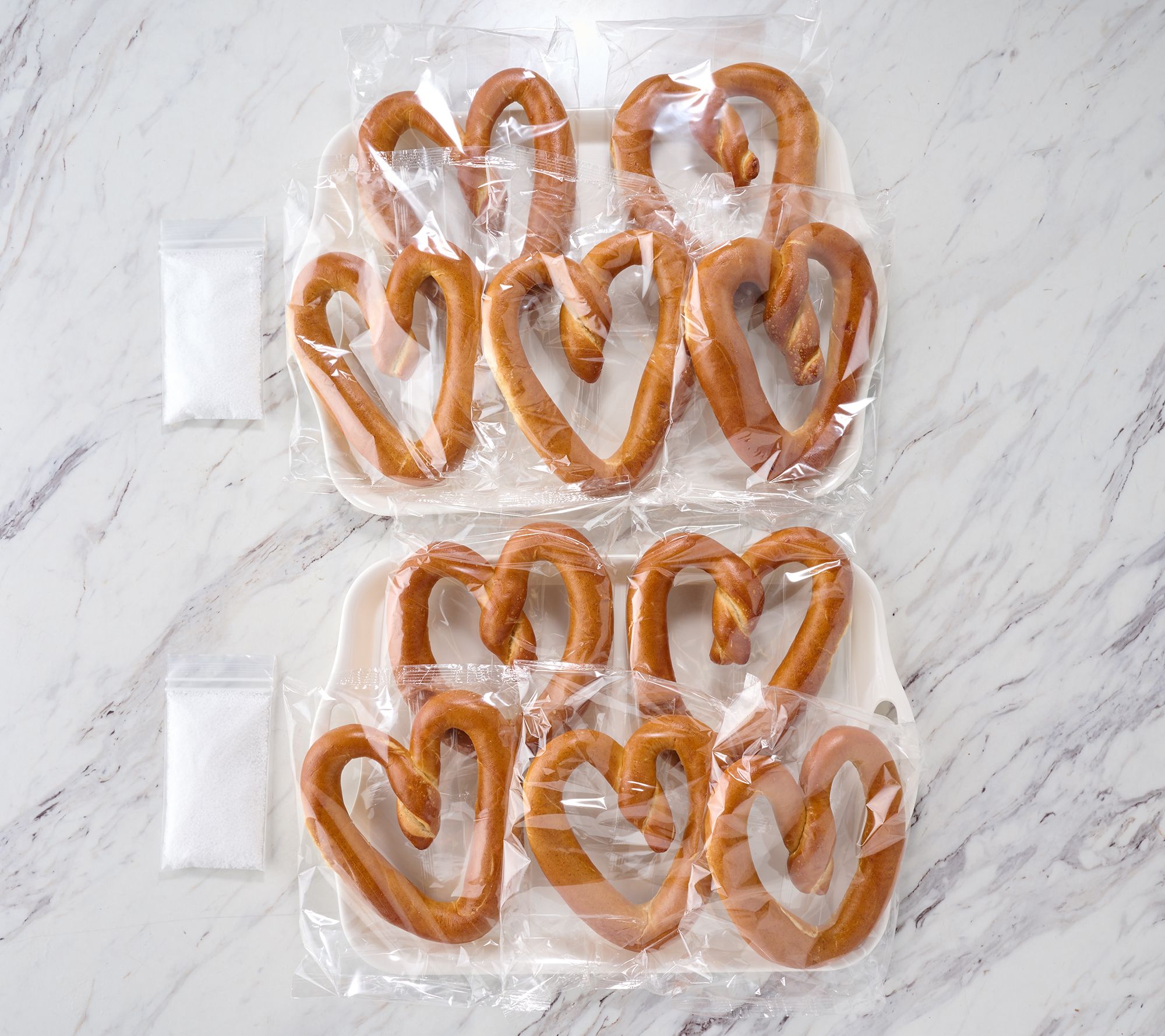 • Includes 10 5-oz hand-twisted heart-shaped soft baked pretzels