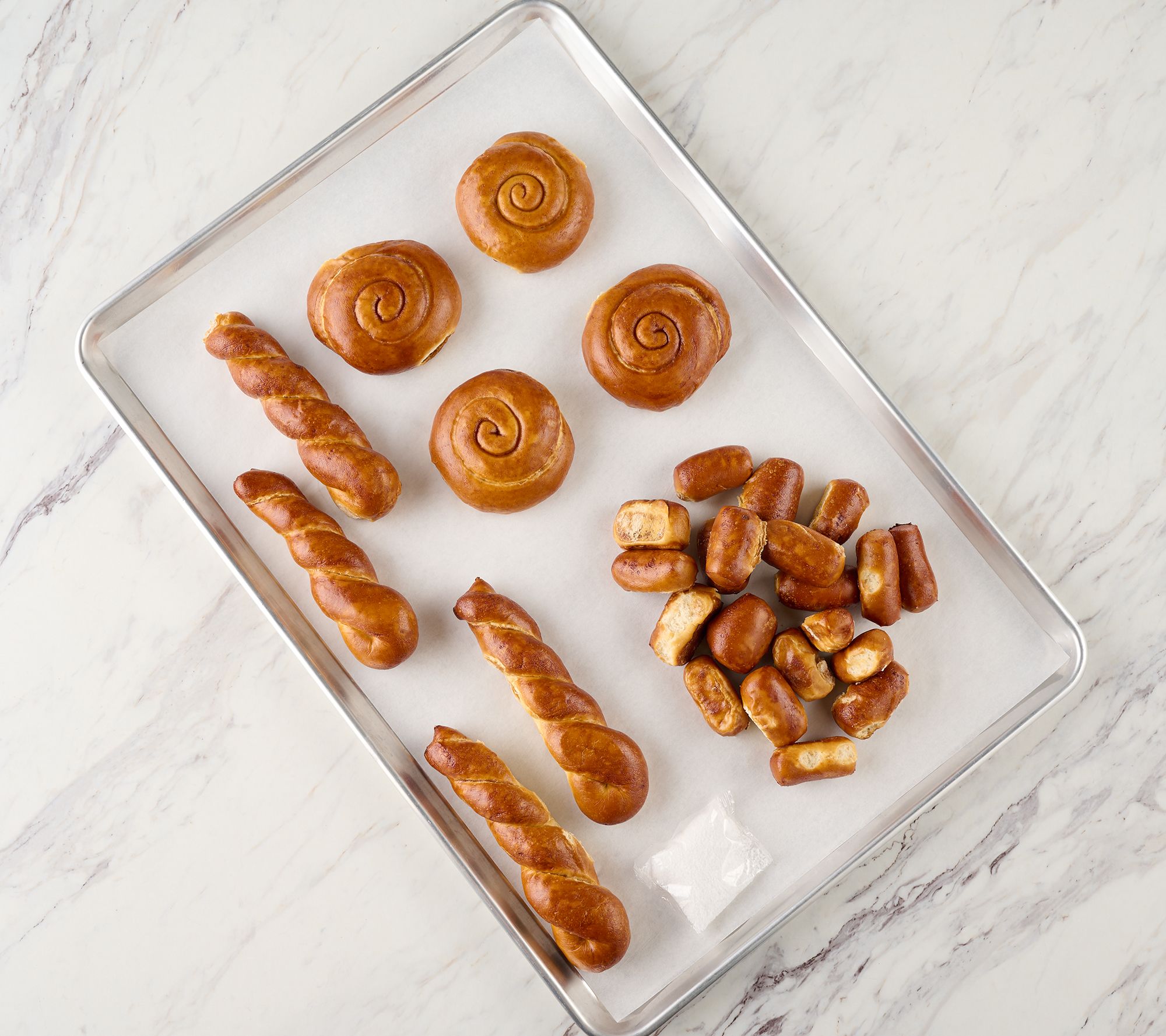 • Includes four 4.5-oz pretzel braids, four 4-oz pretzel sandwich rolls, and 20 pretzel nuggets