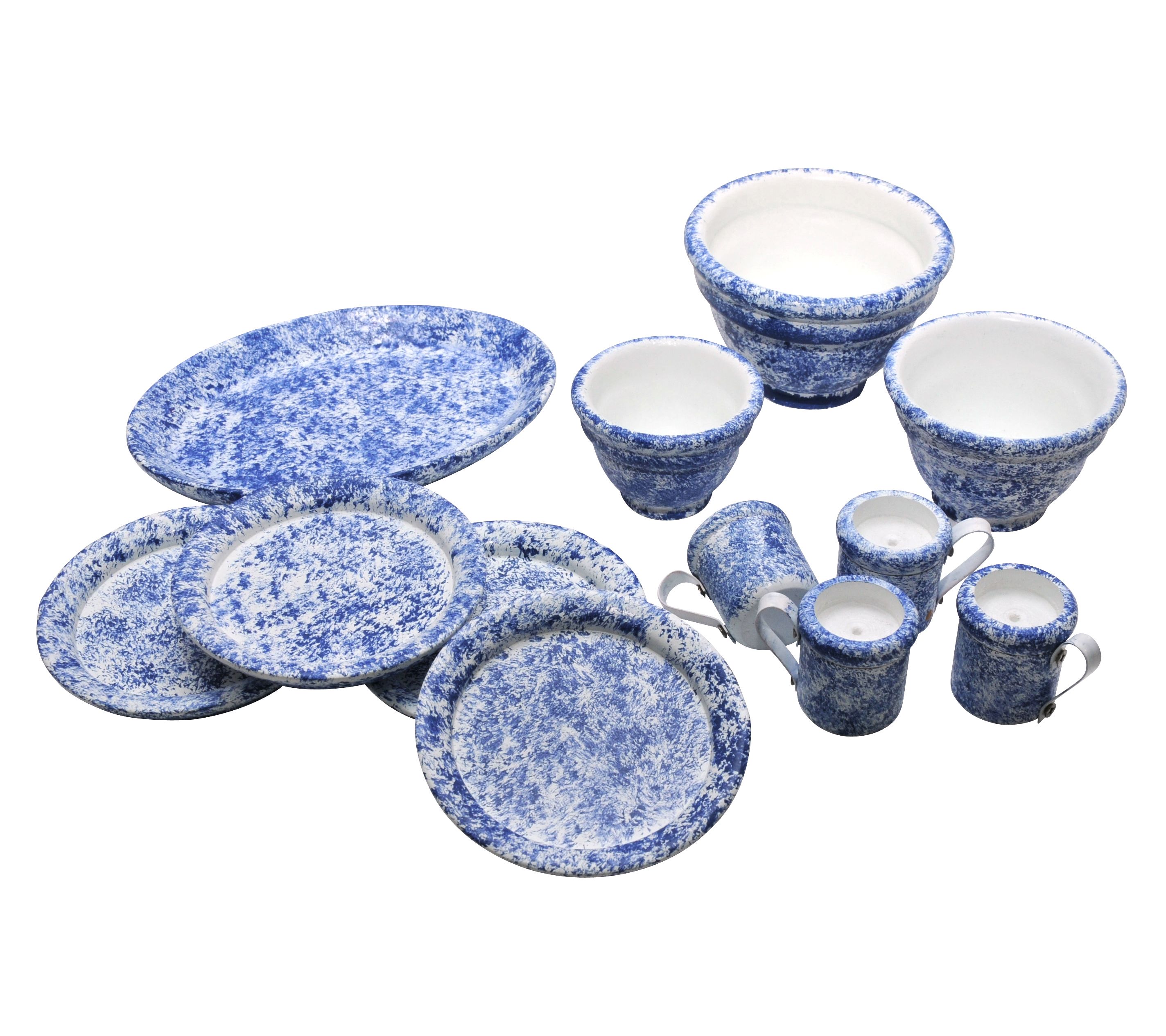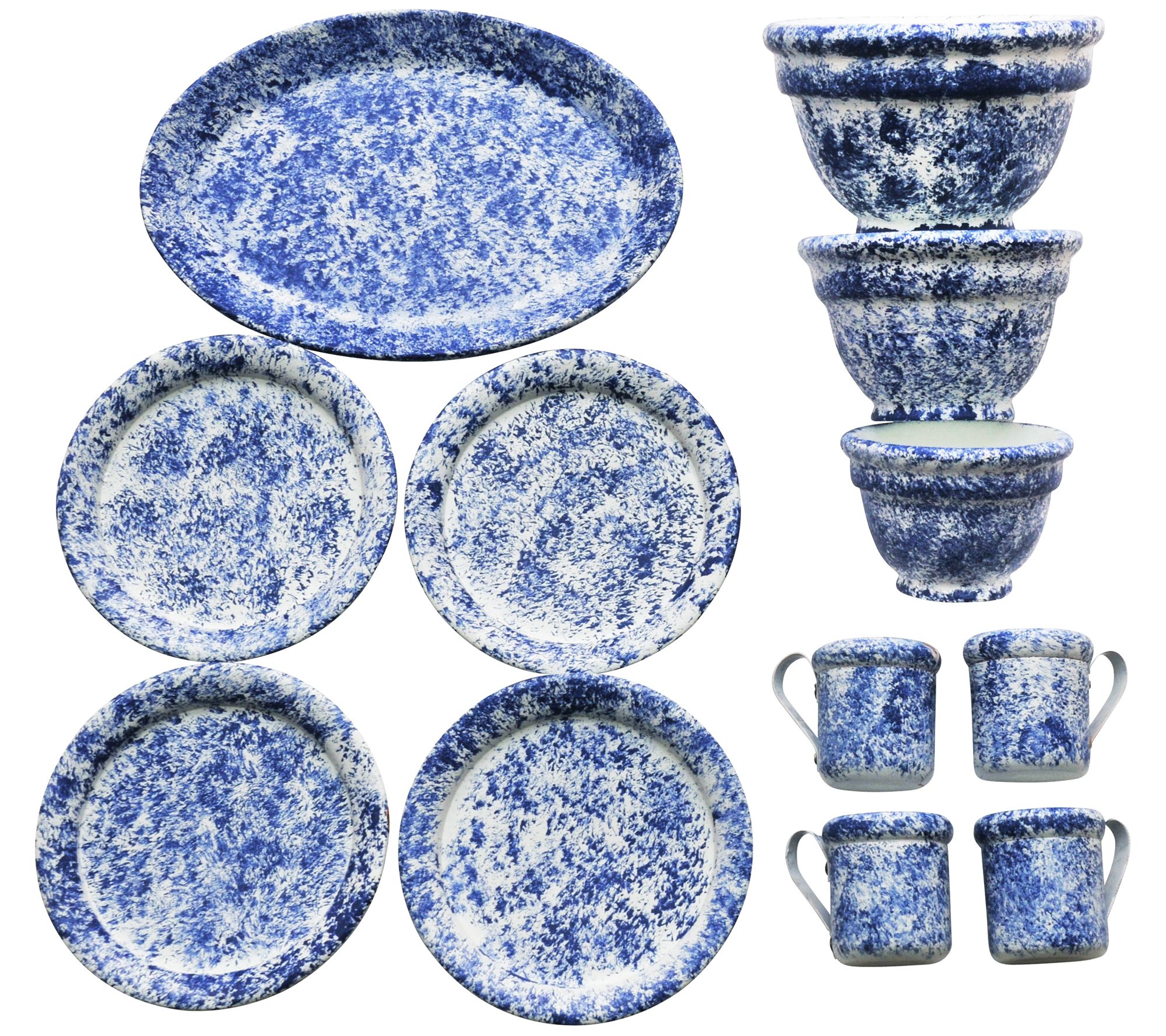 • Includes three nesting mixing bowls, four dishes, four cups, and serving platter