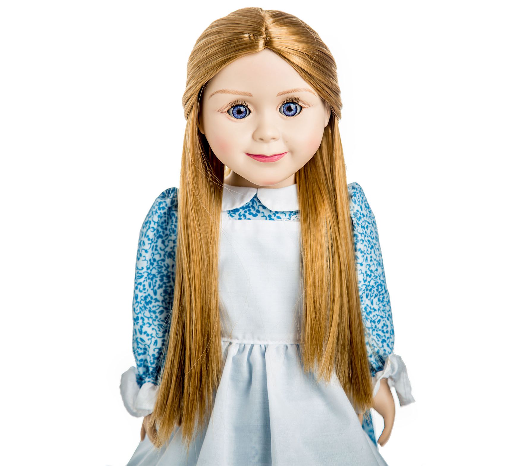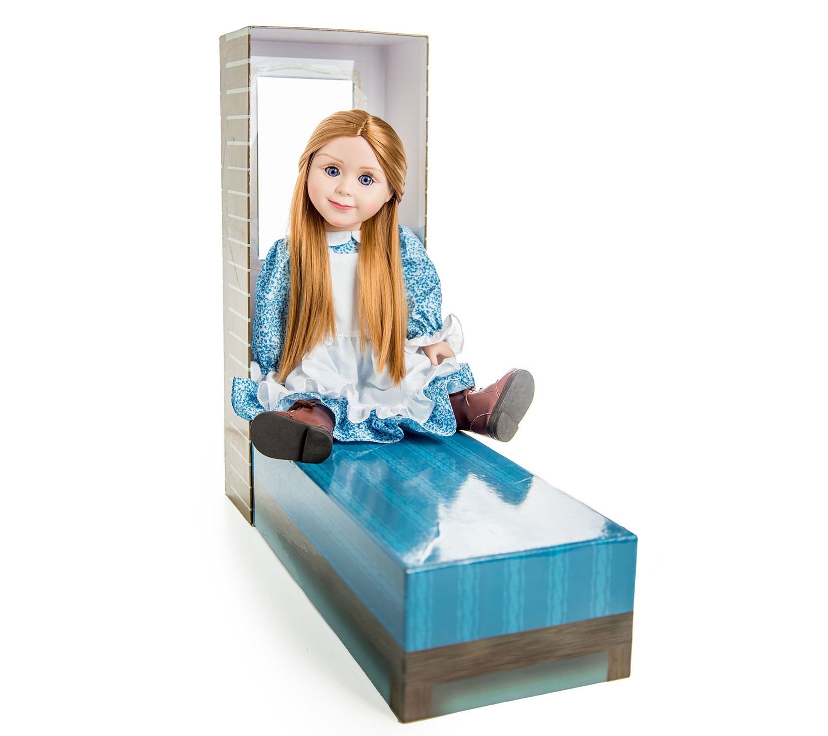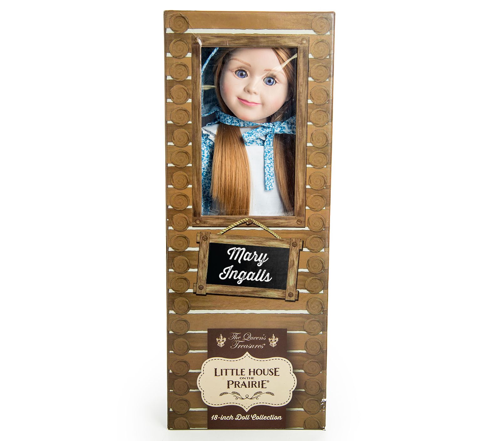 Invite Mary Ingalls into your little house with this 18" doll designed to capture the beloved character's spirit. She comes adorably dressed in a blue calico dress and bonnet, along with a pioneer-style school lunch in a sturdy tin pail. From The Queen's Treasures.