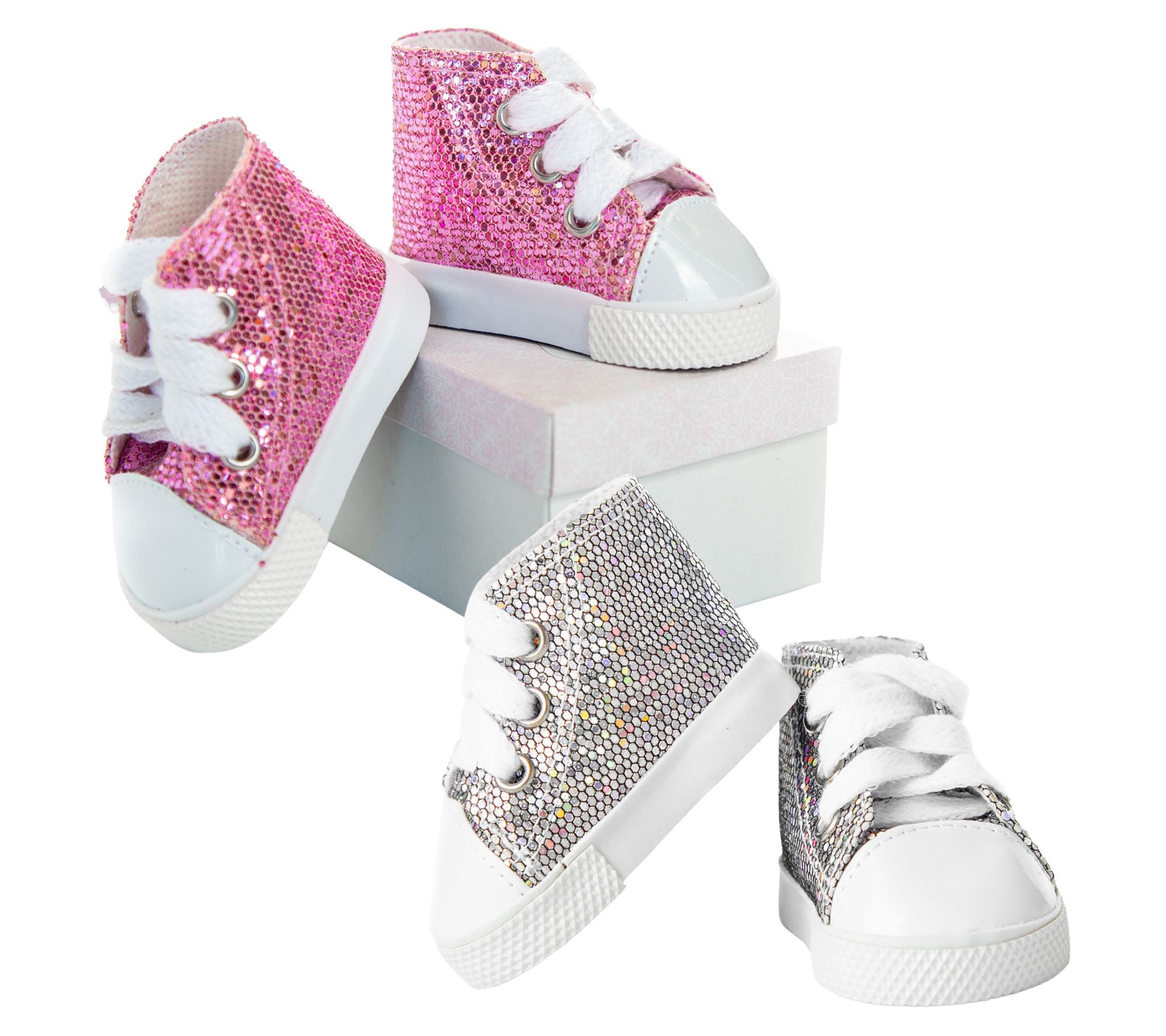 • Includes two sets of shoes, one pink and one silver, and two shoe boxes
