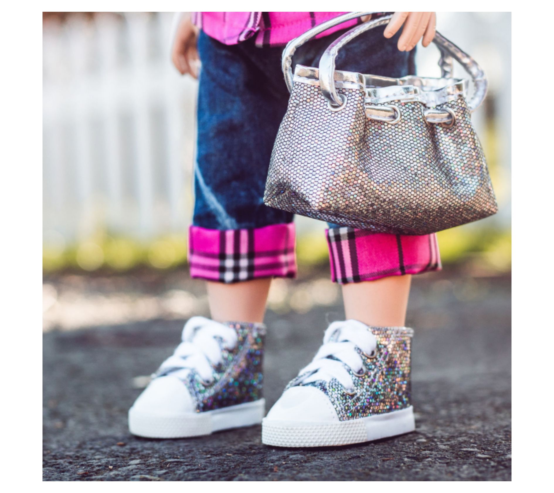• Shoes fit 18" American Girl dolls, not included; purse not included