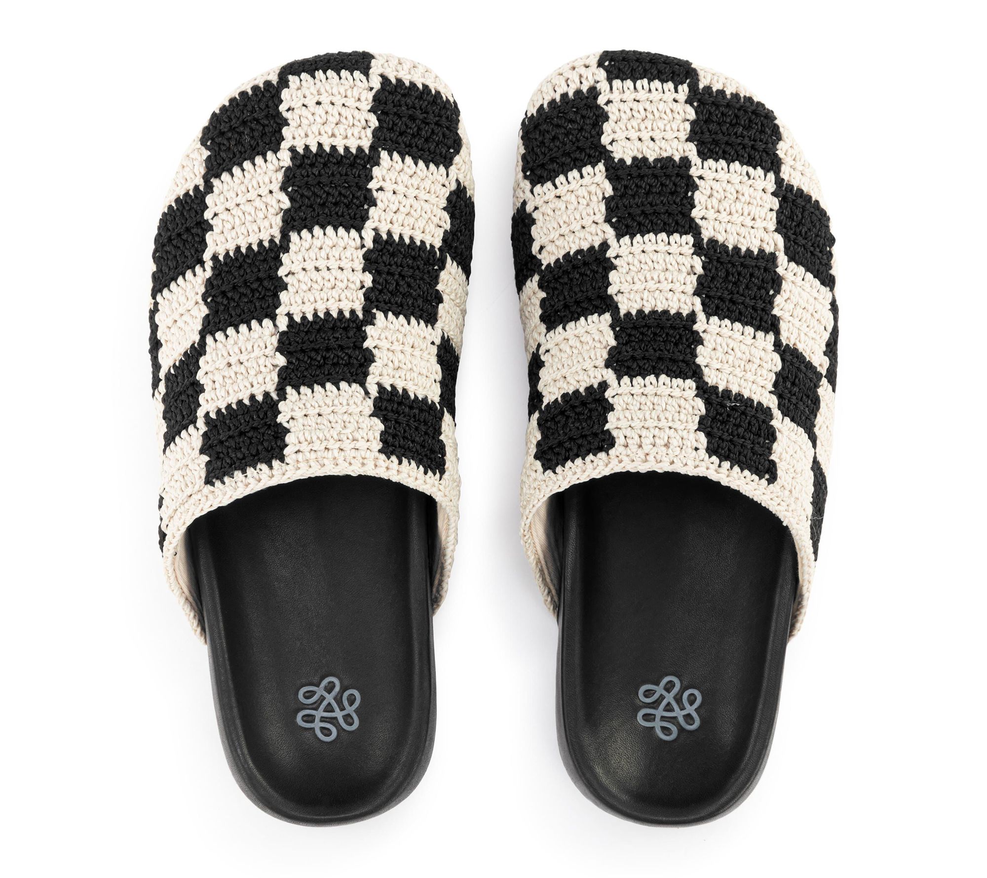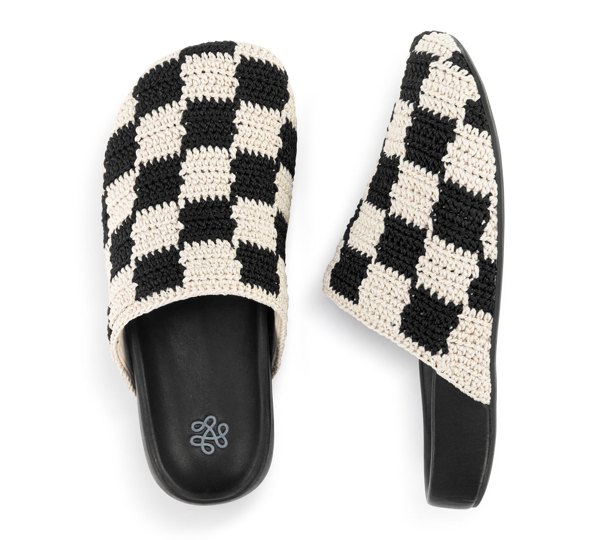 • Slip-on crochet upper with classic round toe and open-back clog silhouette
