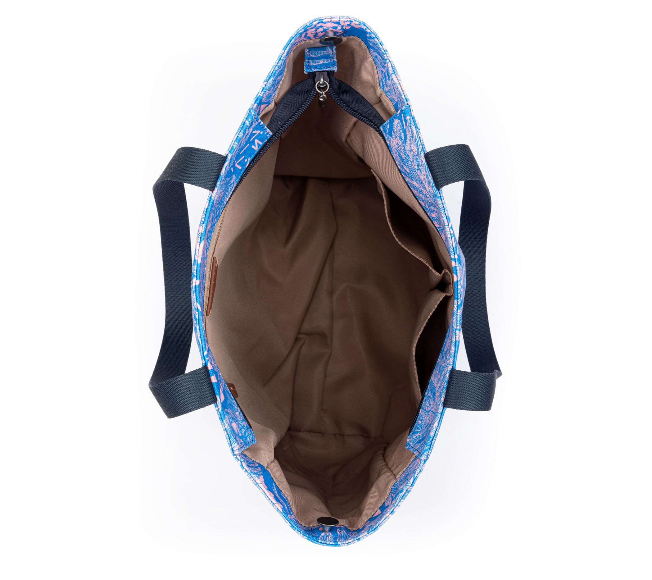 • Double handles, detachable strap, zip top closure