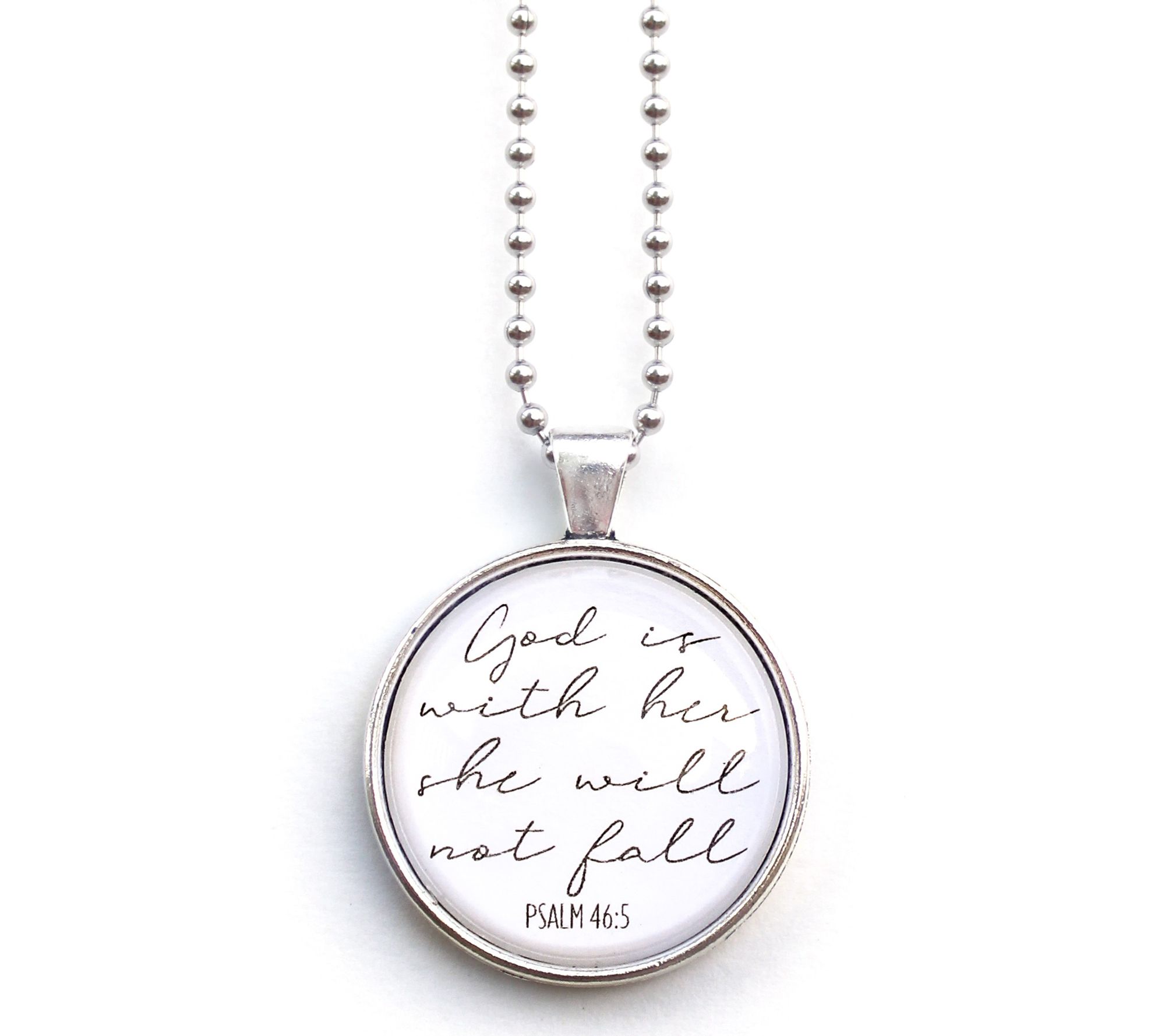 Energize your day with this silvertone pendant necklace that highlights your faith with a motivational message. From The Vintage Sparrow.