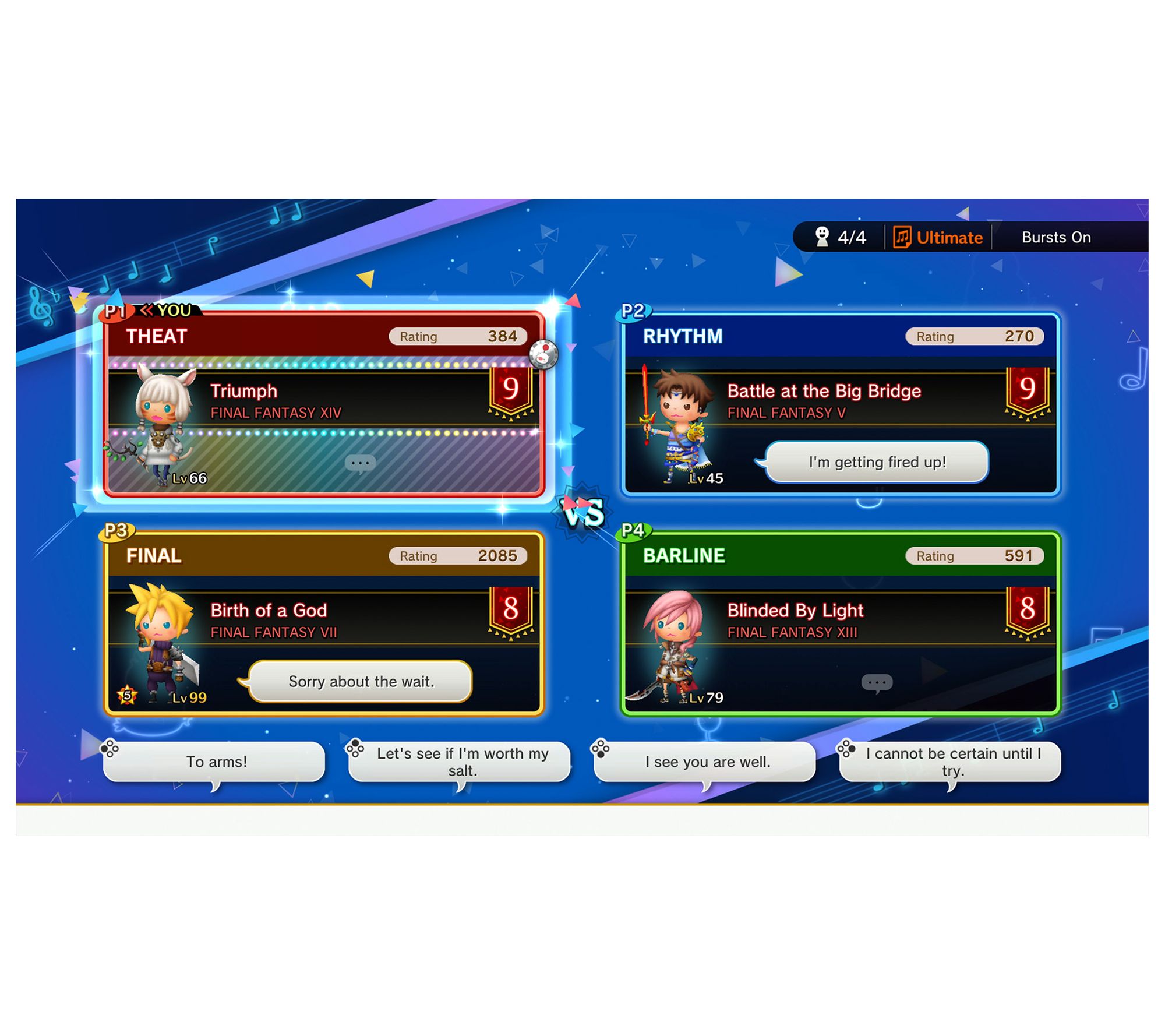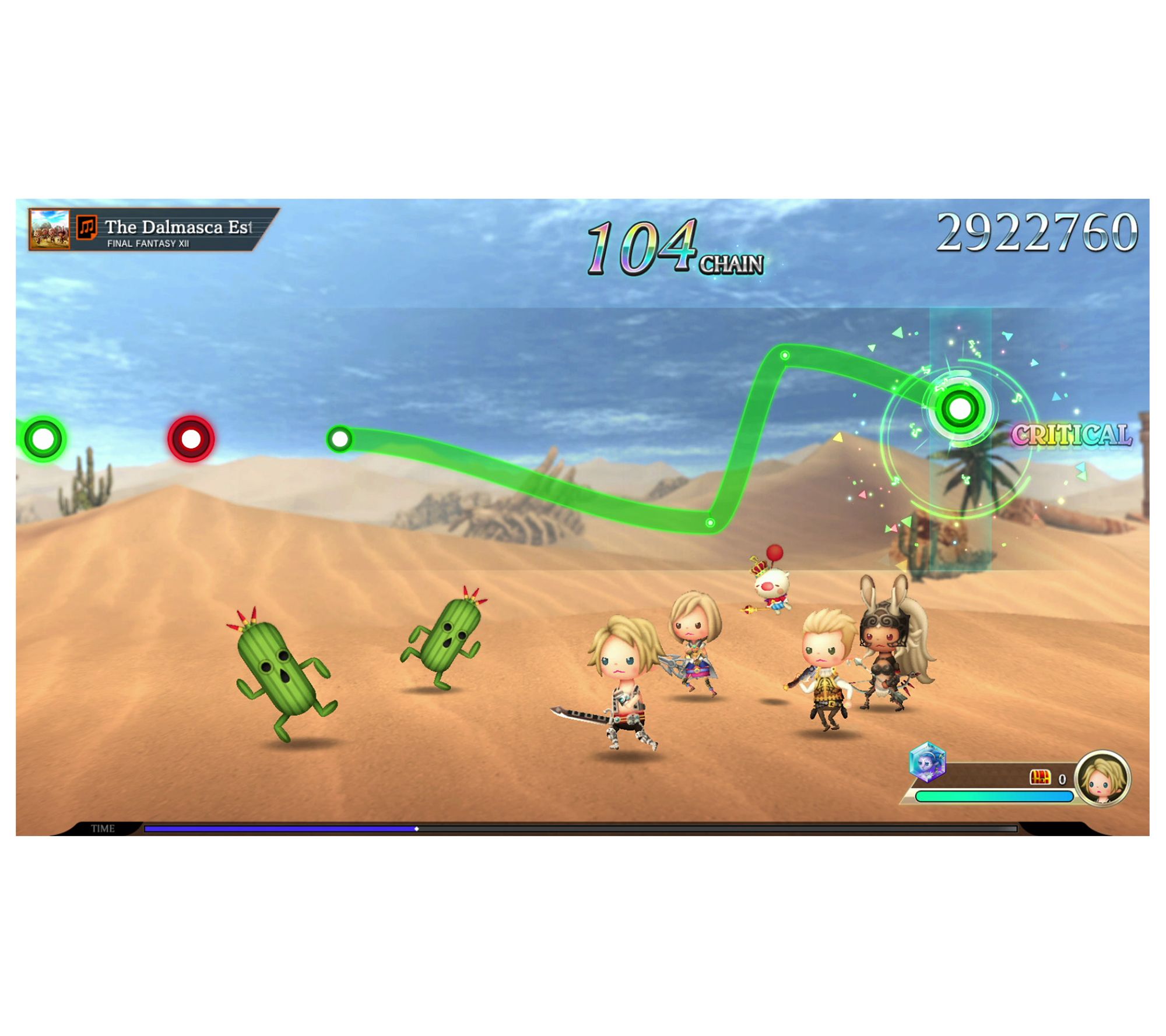The music of Final Fantasy comes together in this rhythmic game, including popular tracks from FFI through to FFXV, as well as remakes, spin-offs and various different soundtracks. Relive the thrilling battles and soaring emotions alongside beautiful music and video. From Square Enix.