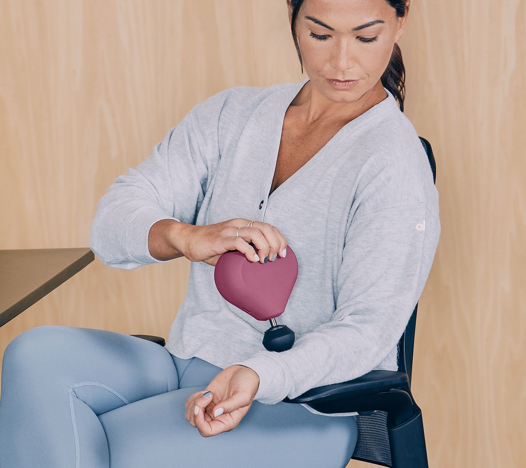 Percussive therapy helps to temporarily relieve minor acute muscle pain