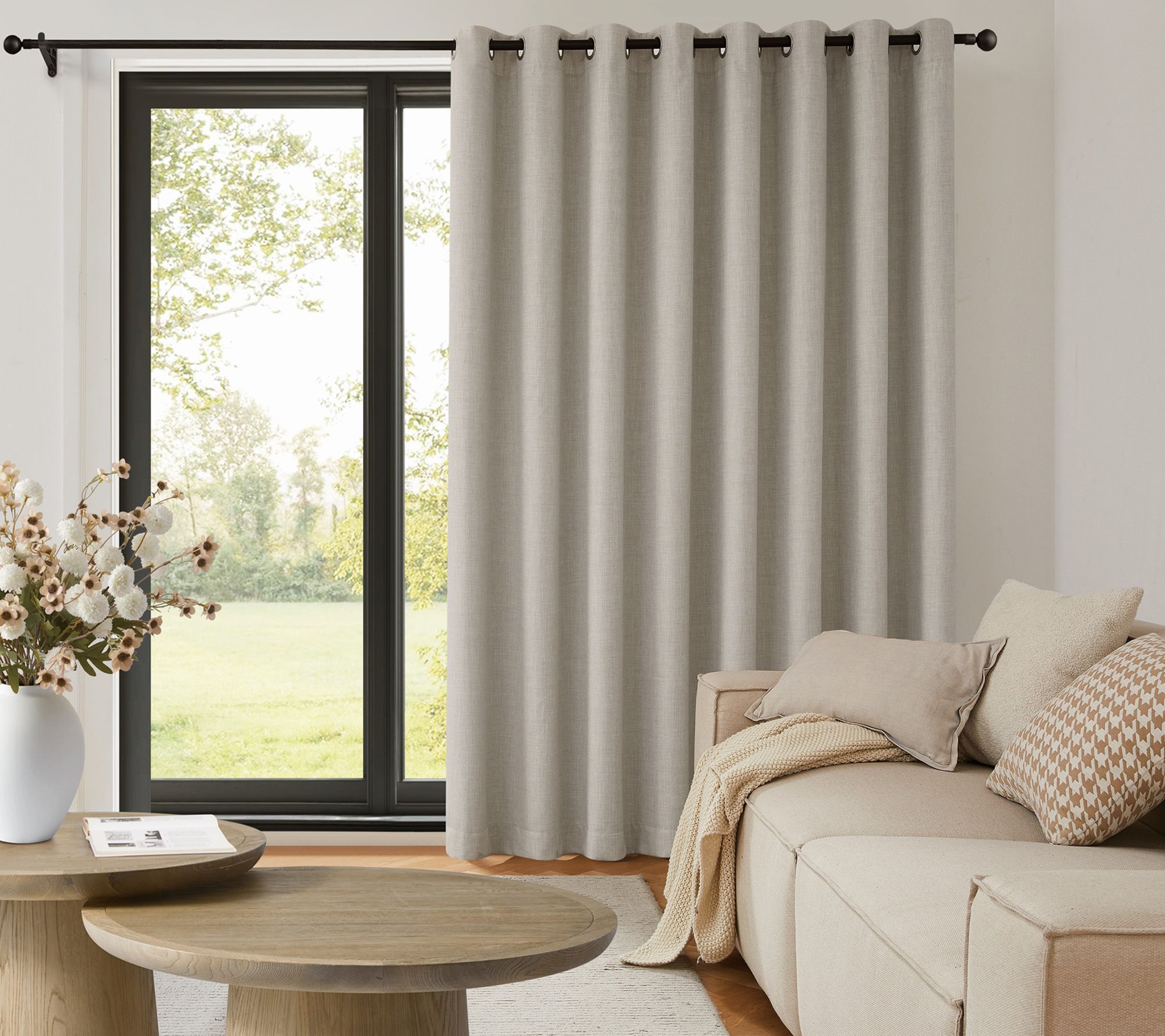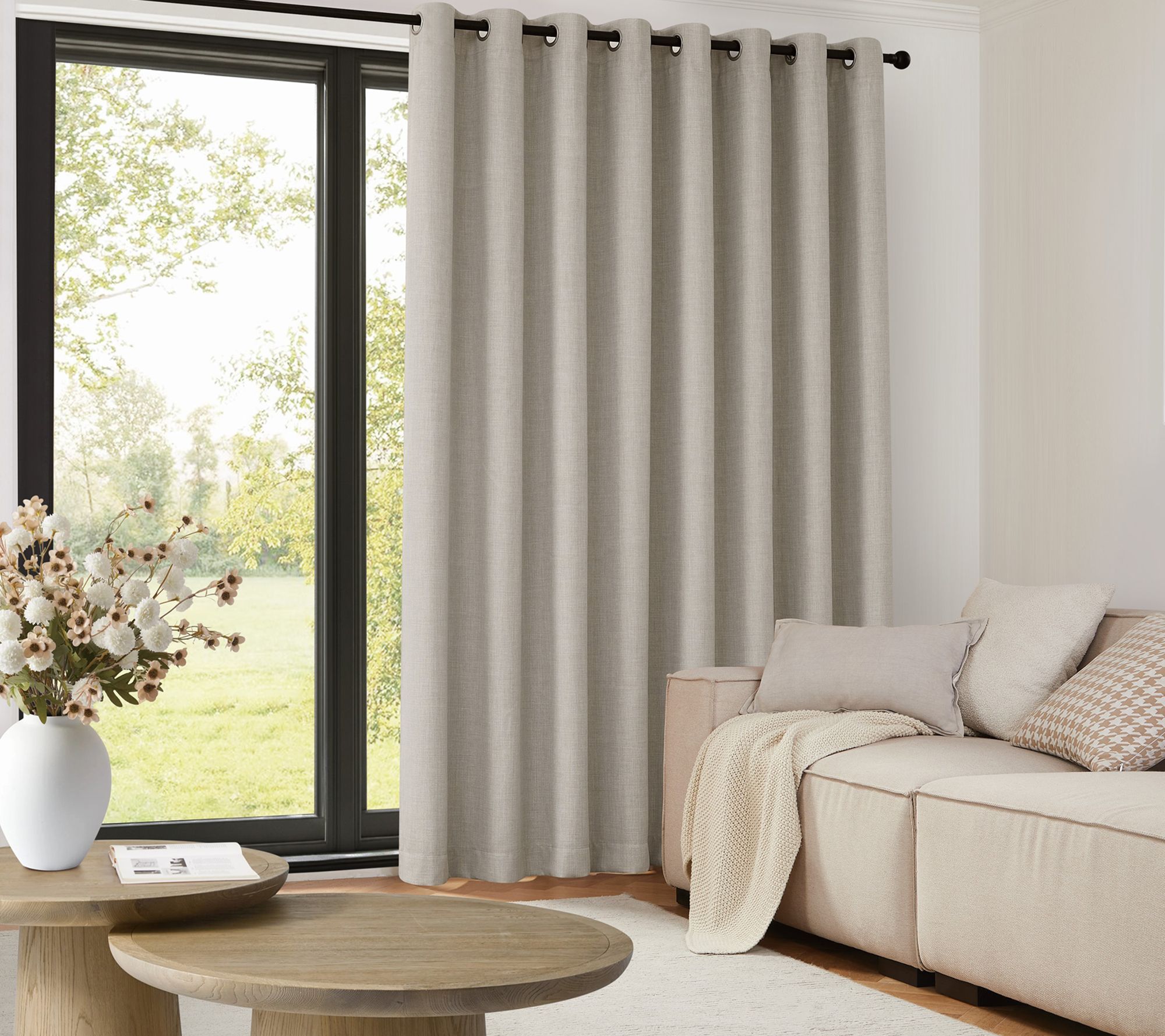 Create comfortable, energy-smart living with this insulated grommet patio door panel. Designed for large window spaces, it combines an elegant linen weave fabric and a removable thermal liner, so you can enjoy a stylish look while keeping your home cozy and efficient throughout the seasons. From TRU-BARRIER WINDOW SOLUTIONS.