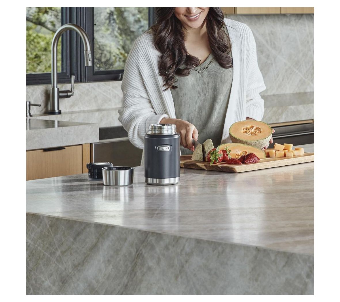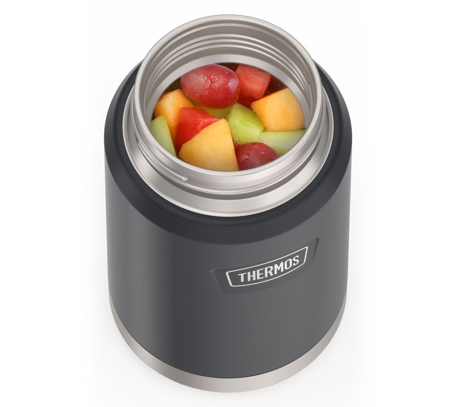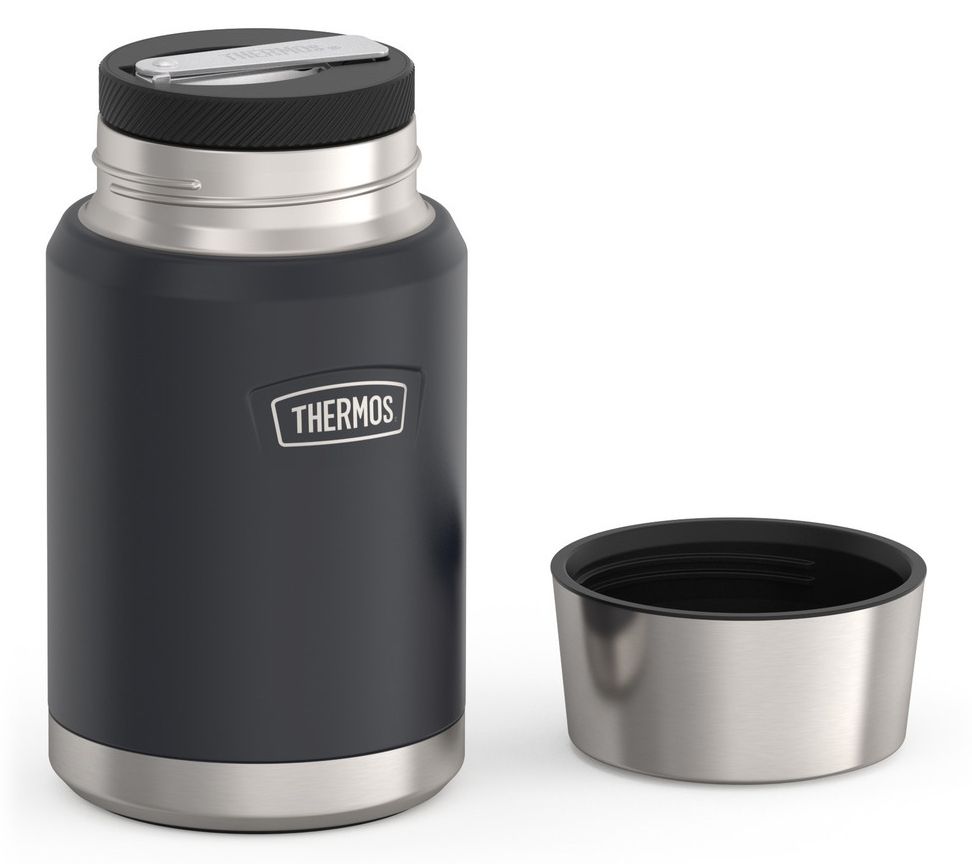Take your meals on the go with the Thermos ICON 24 oz stainless steel food jar with spoon. Its vacuum insulation technology keeps food fresh, whether it's hot soup or a cold salad. The non-slip base ensures stability, while the stow-away spoon adds convenience. From Thermos.