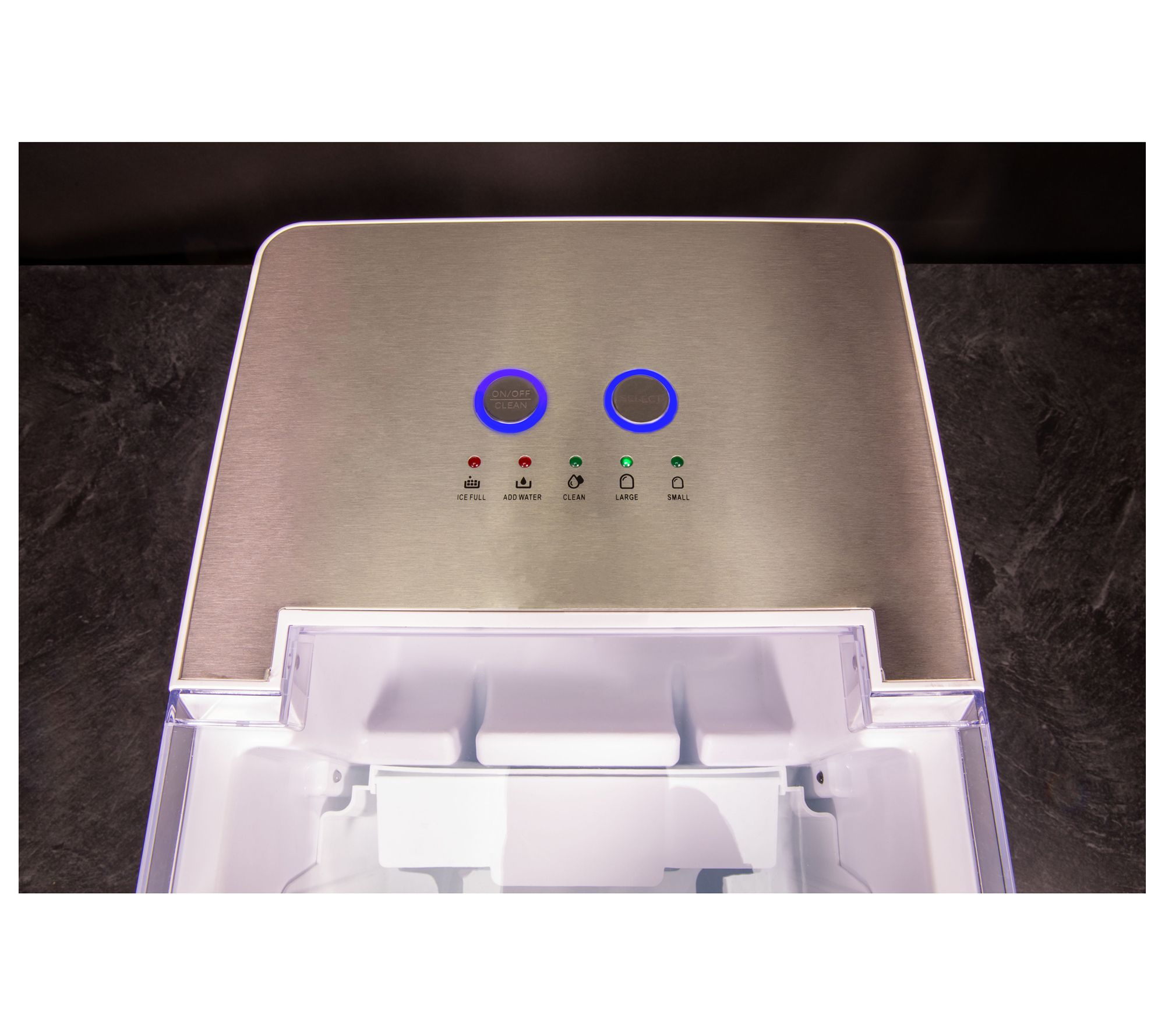 • Produces up to 33 lbs of ice per day; stores up to 2 lbs of ice