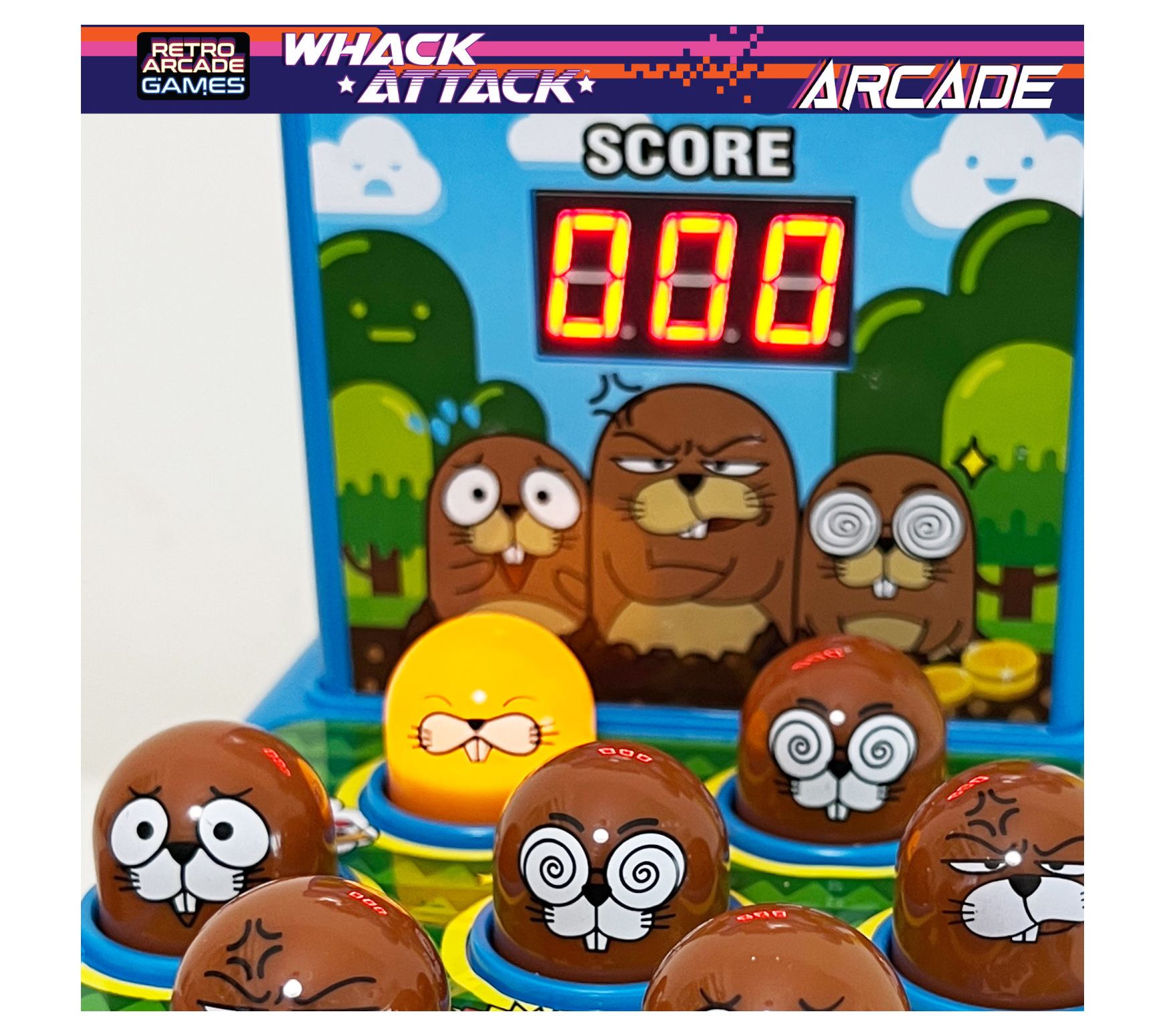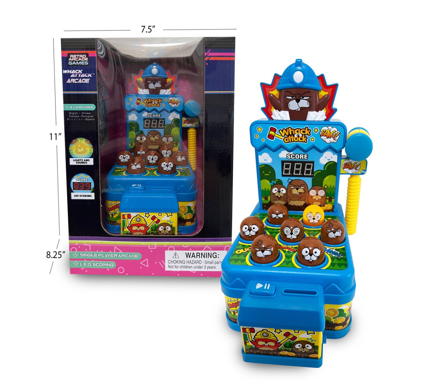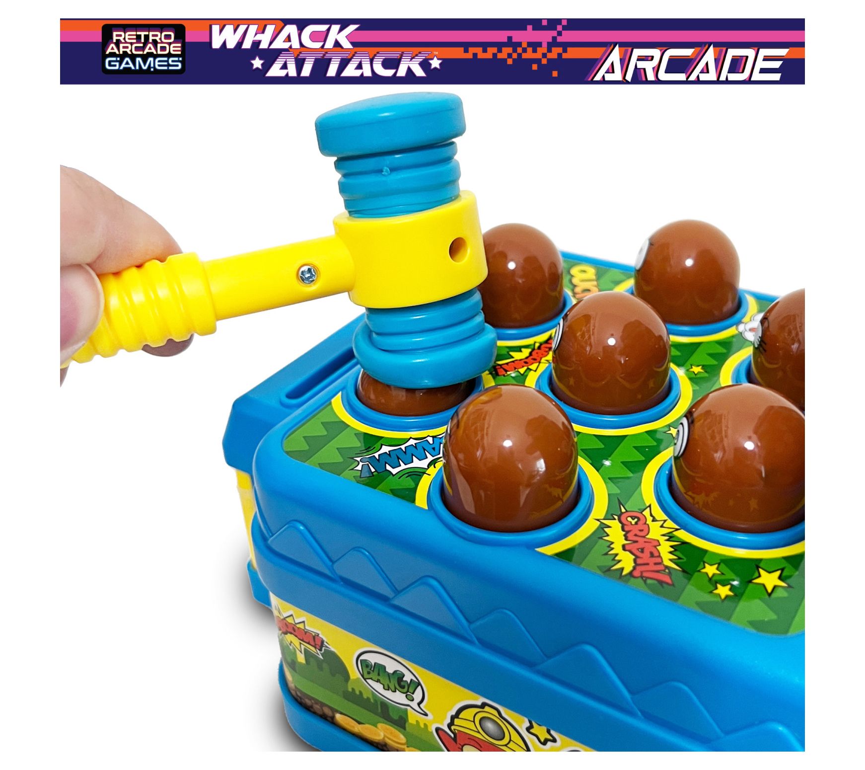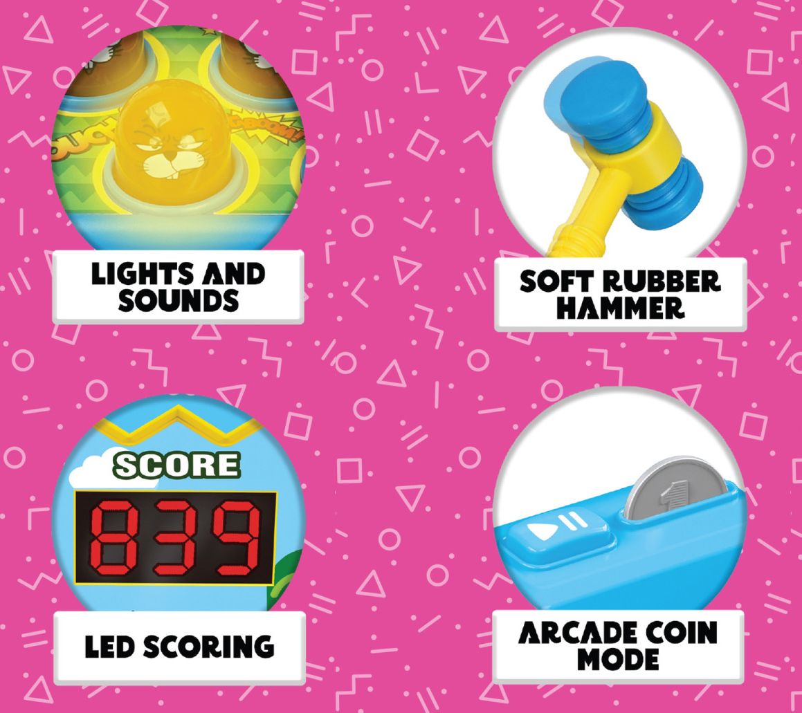 • Includes Whack Attack Arcade game, hammer, and six coins