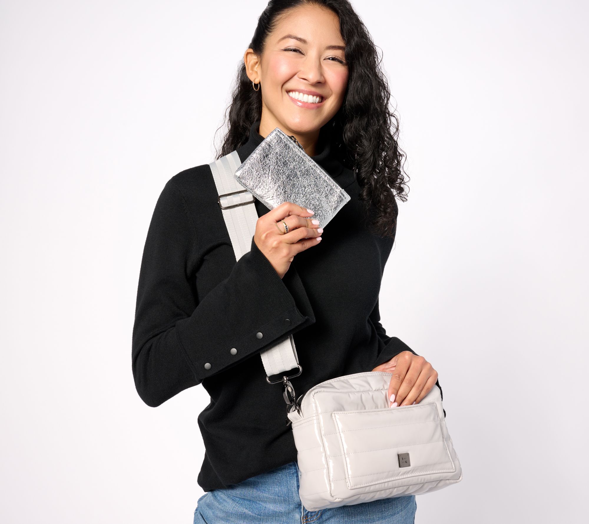 Think Royln Margo Crossbody w Crinkle Metallic Luxe Wallet