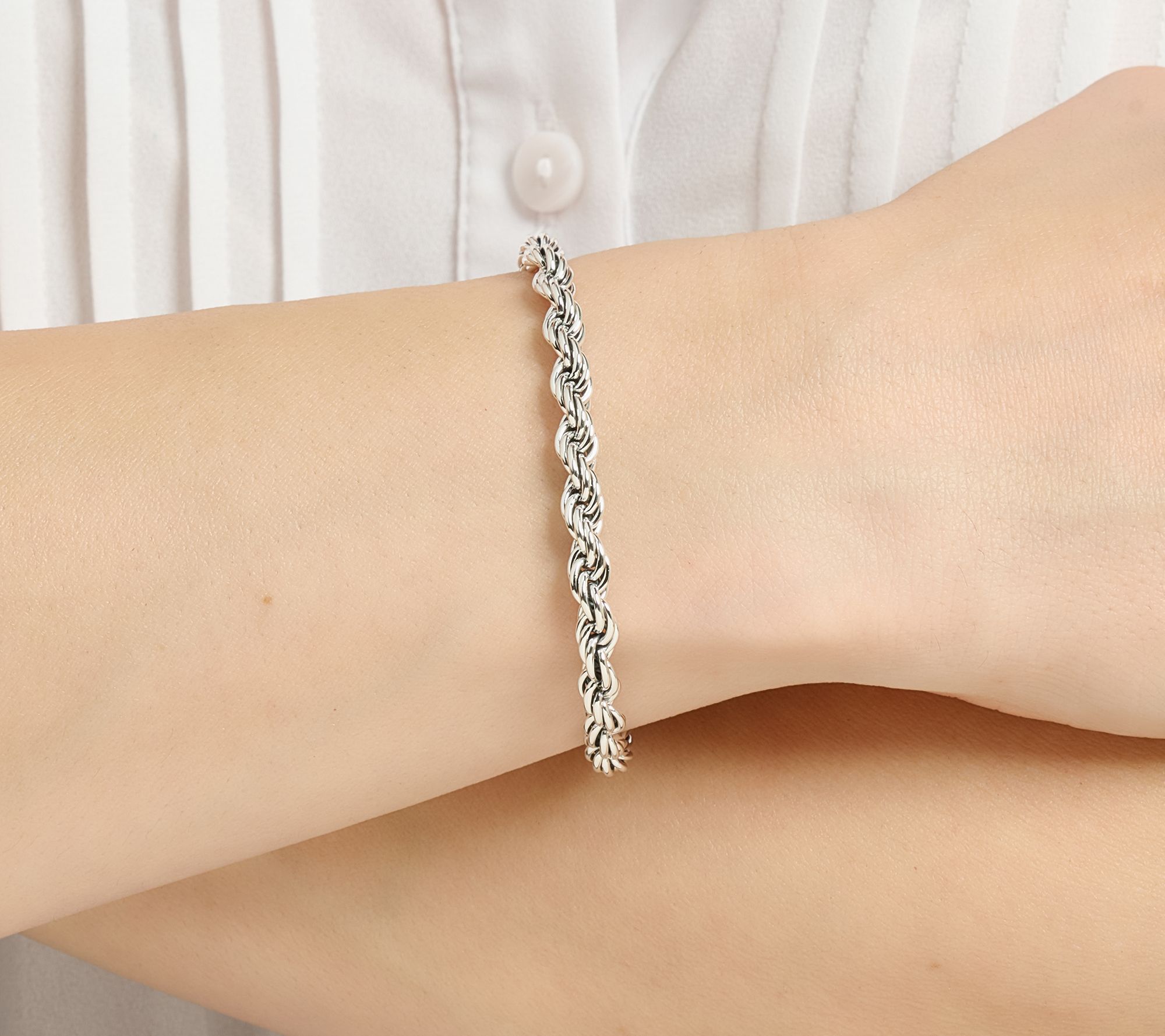 An elegant rope chain bracelet in sterling silver brings timeless style to casual days and special occasions alike. Its substantial 4.9mm width feels luxe at every angle, while polished and oxidized links catch the light beautifully as you move. Reach for this classic bracelet to complete your signature stack or wear solo for understated sophistication. From Third Person.