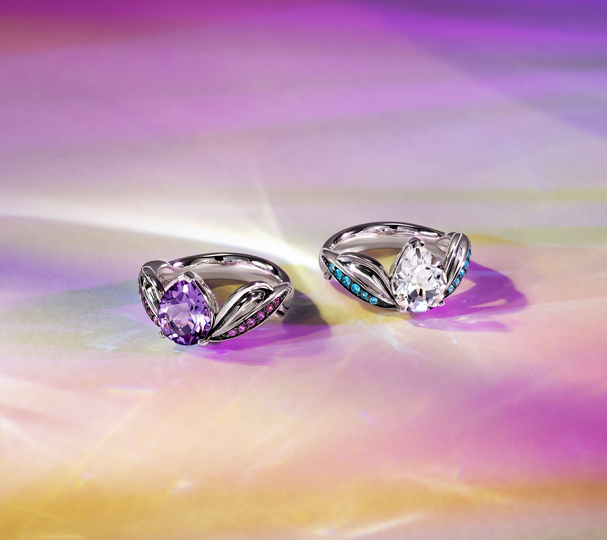 Total gemstone weights are approximate: White topaz 2.4 carats; Blue chalcedony 0.10 carat; Rose de France 1.7 carats; Rhodolite 0.10 carat