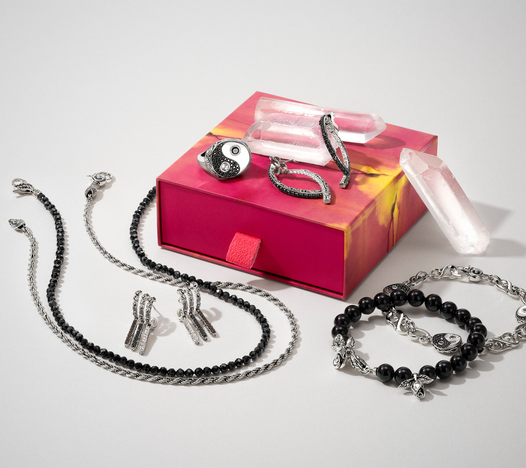 • Black Orchid: white topaz, black spinel, smoky quartz