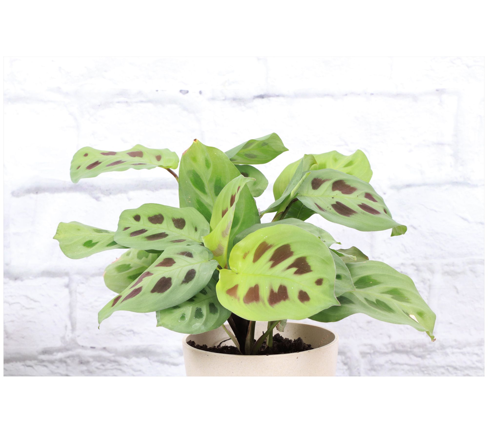Prayer plants, also called maranta, are a popular houseplant known for the intricate designs of their leaves. This green variety has soft mint green leaves with reddish brown 'rabbit tracks'. Watch as this plant moves it's leaves to follow the sun throughout the day. From Thorsen's Greenhouse.