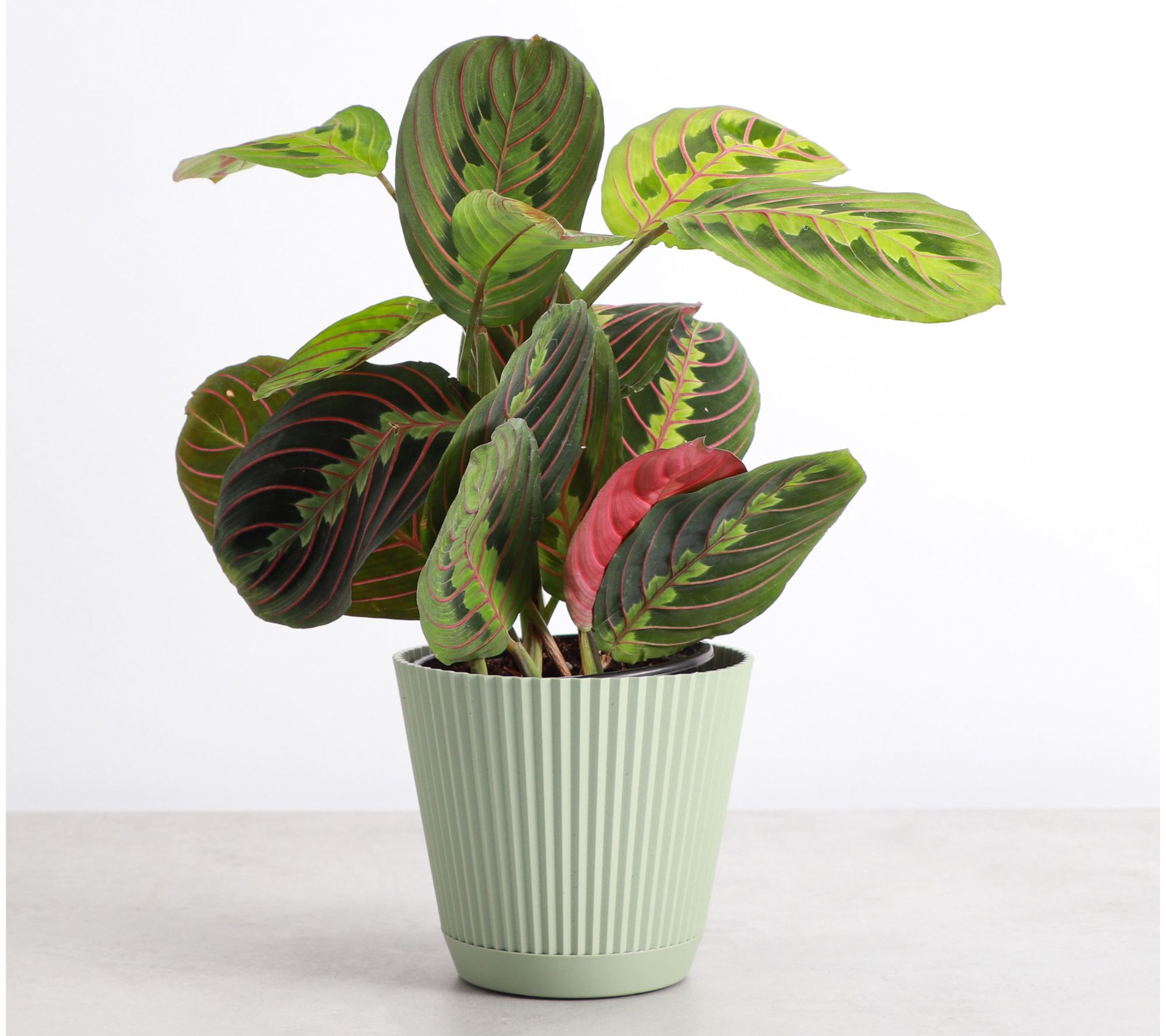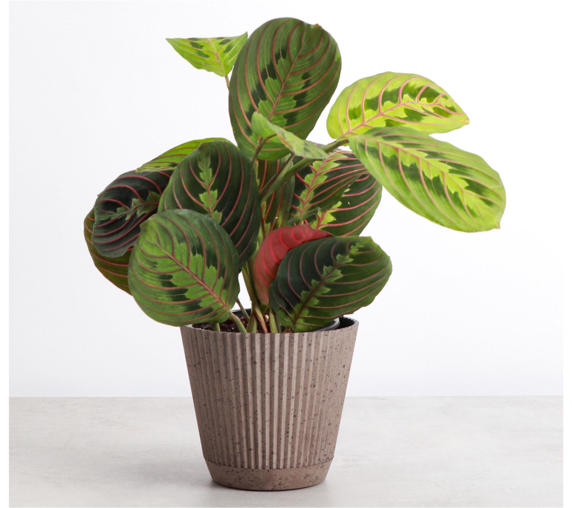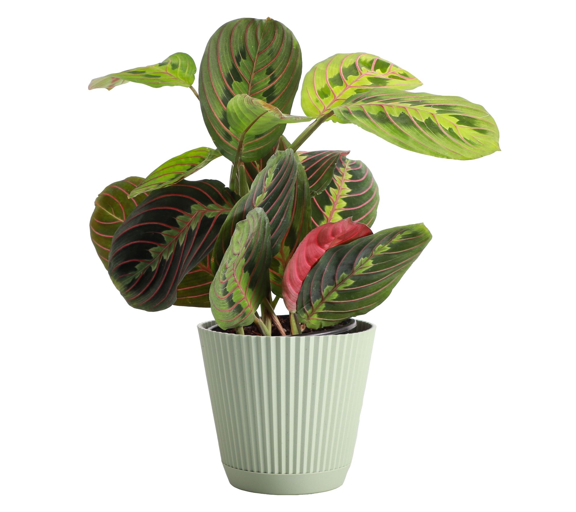 • Shipped as: one 4" red prayer plant in ruffle pot
