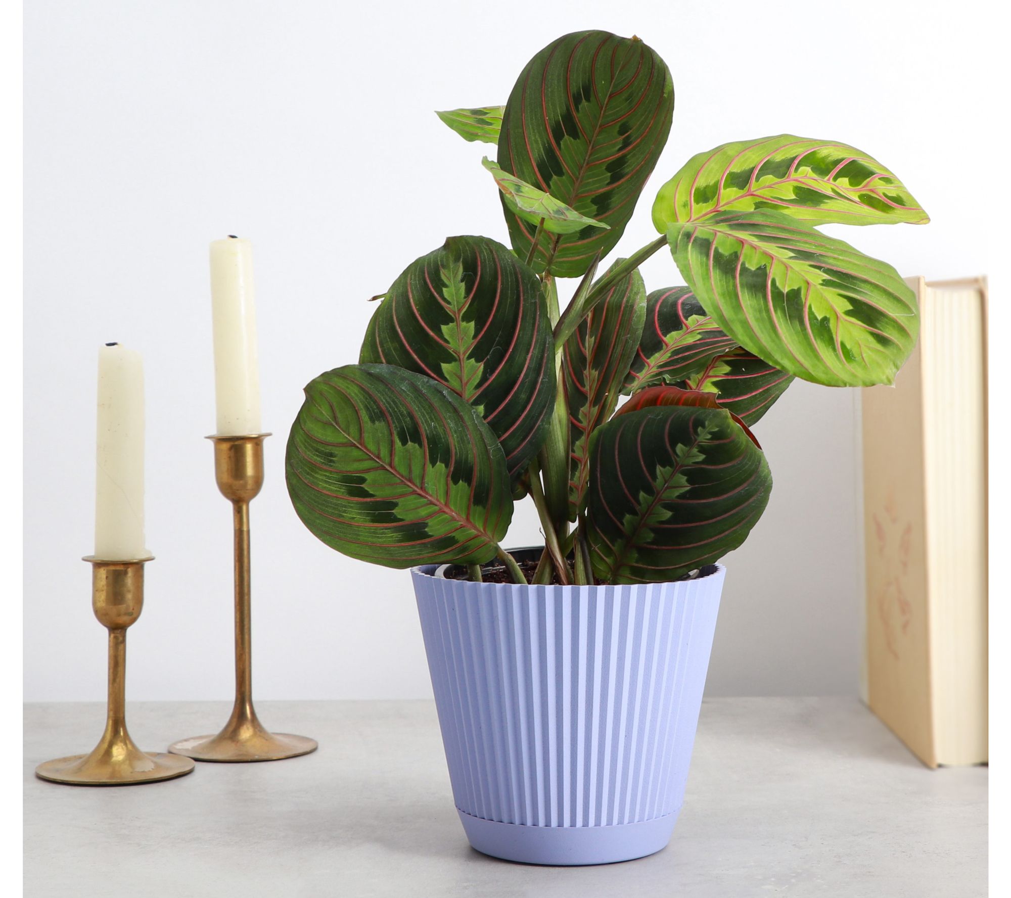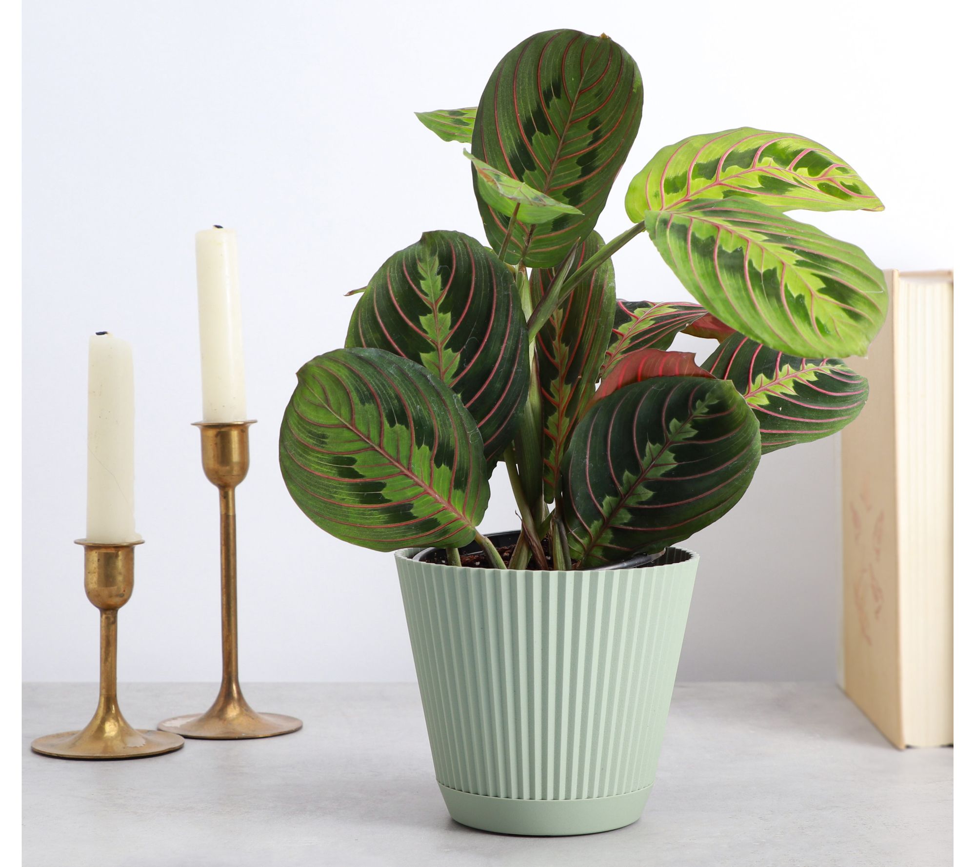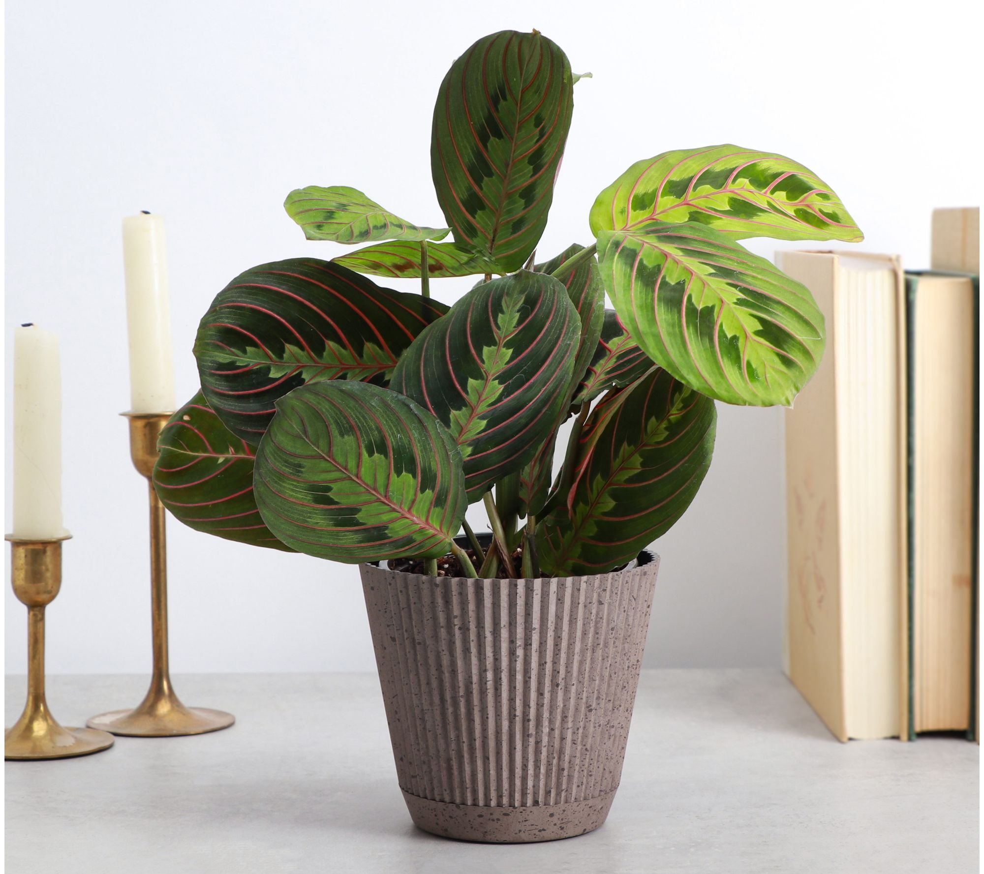 • Shipped as: one 4" red prayer plant in ruffle pot