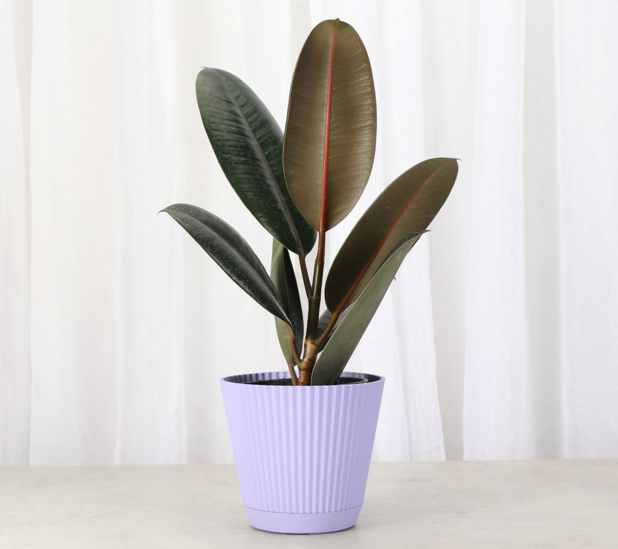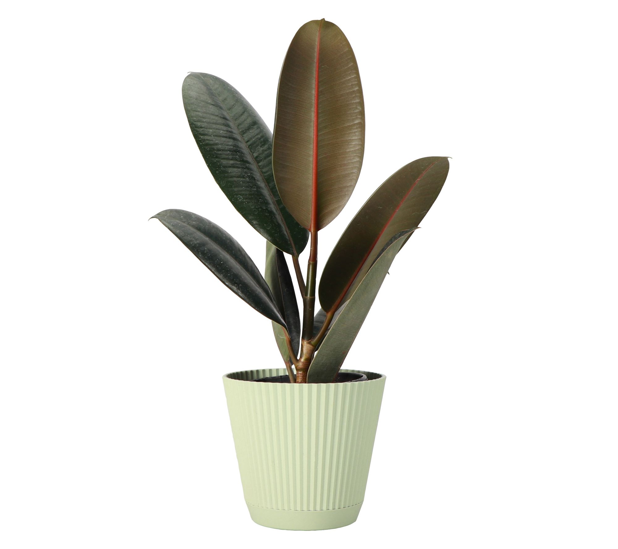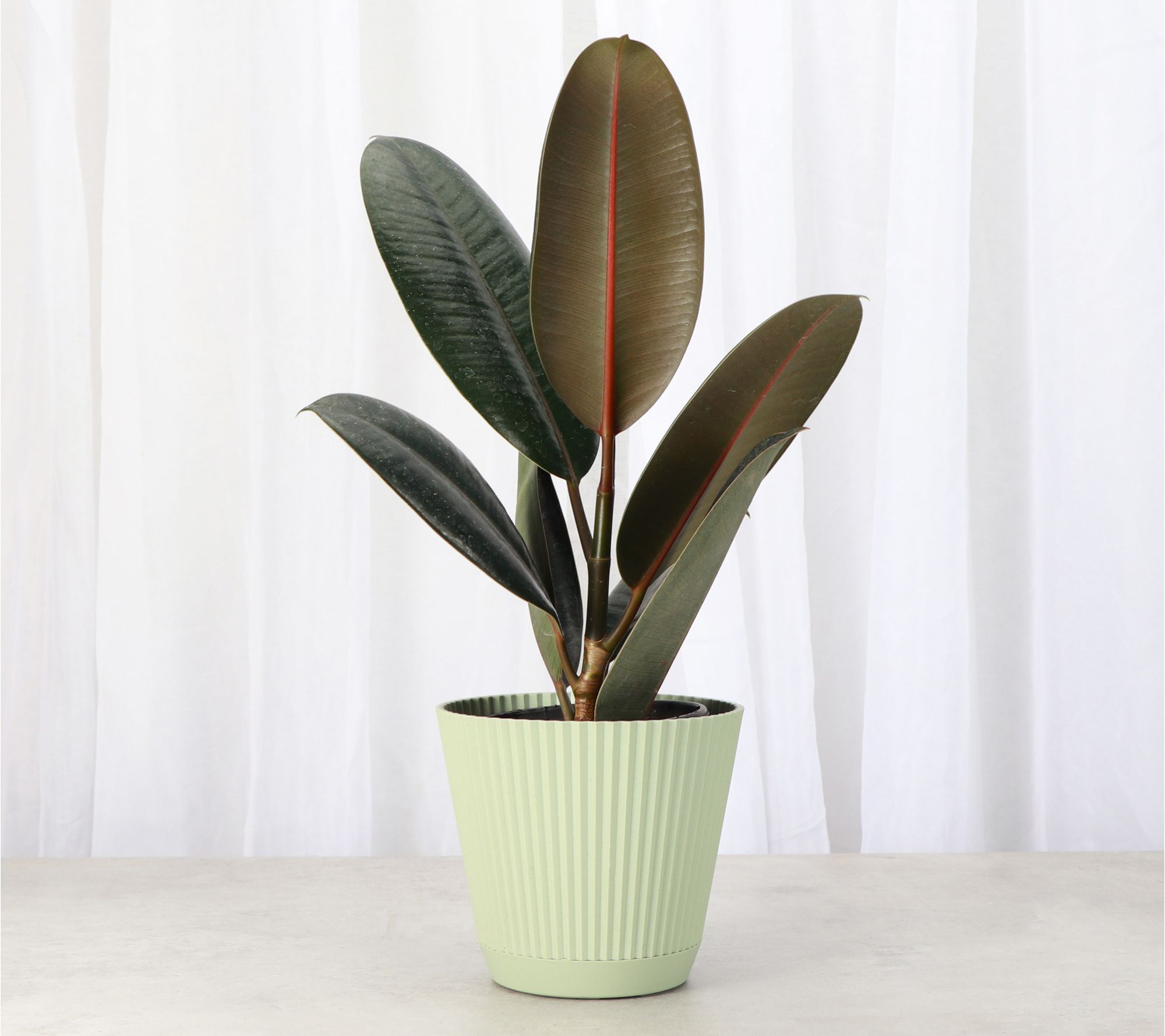 • Shipped as: one live 4" rubber plant in ruffle pot