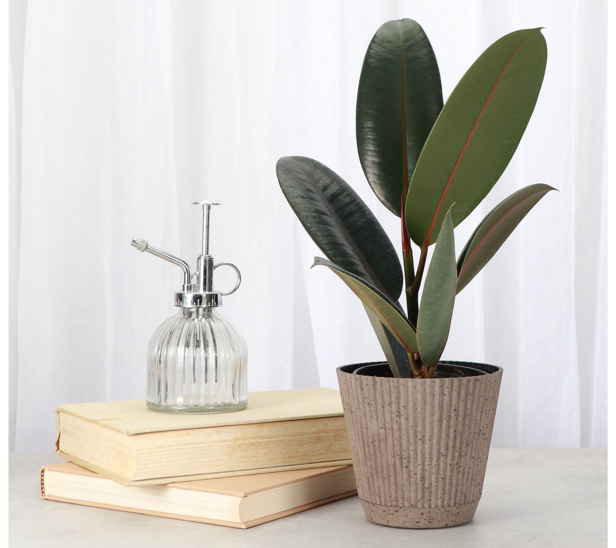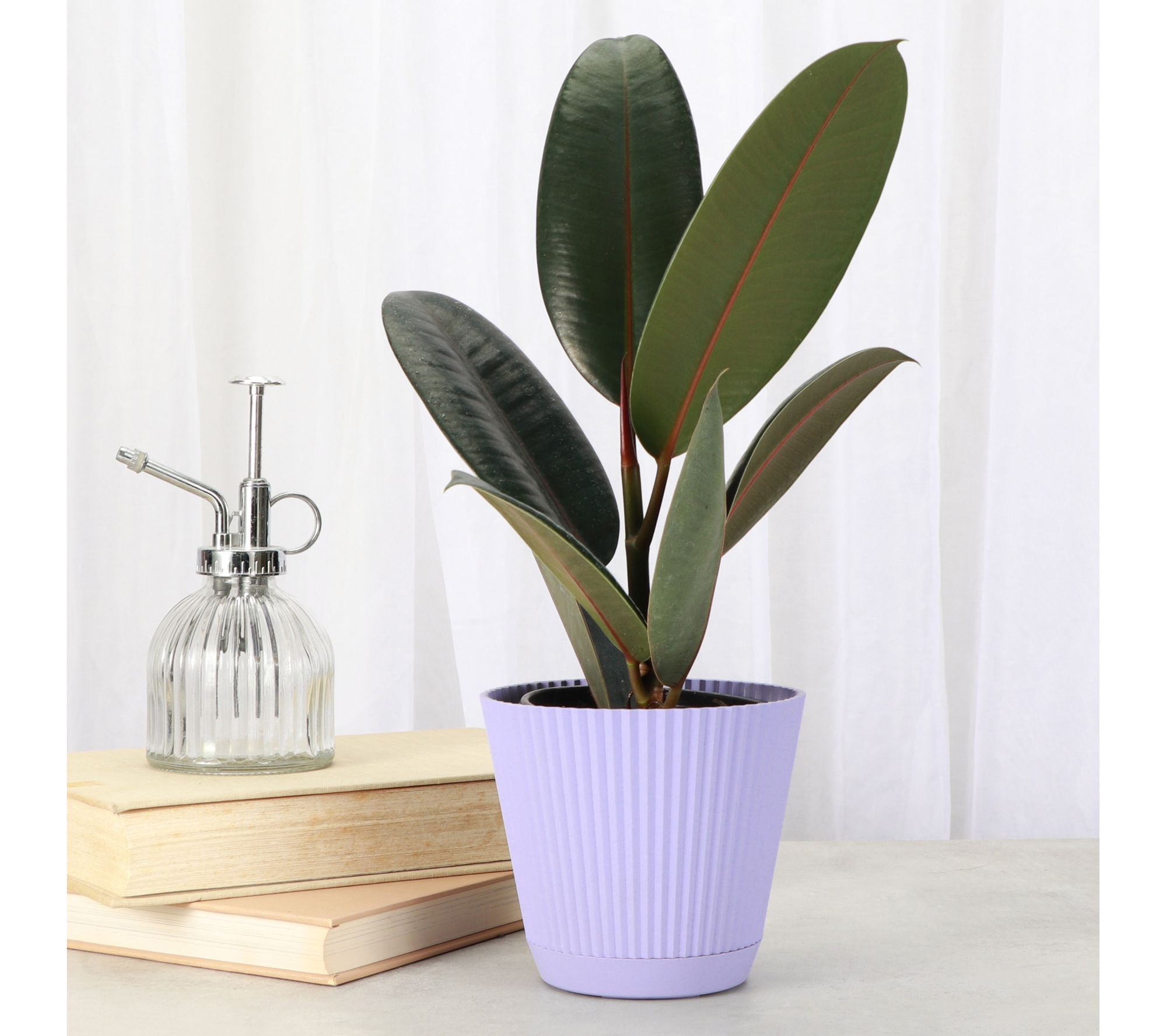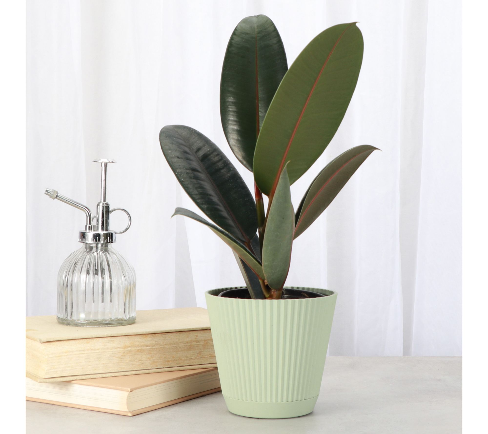 • Shipped as: one live 4" rubber plant in ruffle pot