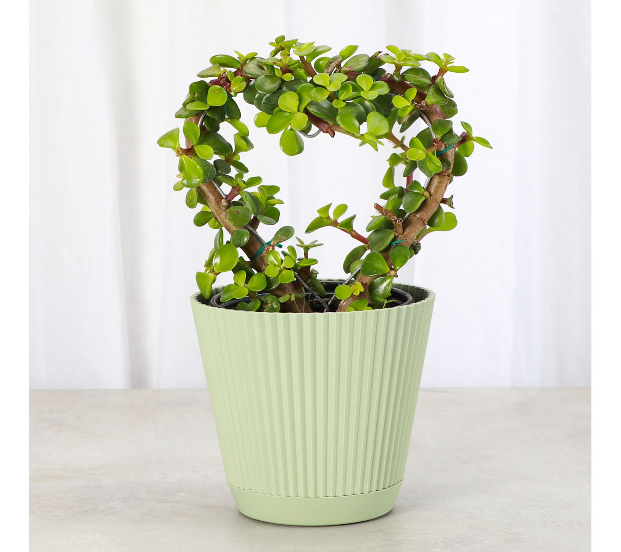 Expand your houseplant collection with this Jade Heart Bonsai Plant, known for its vibrant green leaves and unique heart-shaped trellis. From Thorsen's Greenhouse.