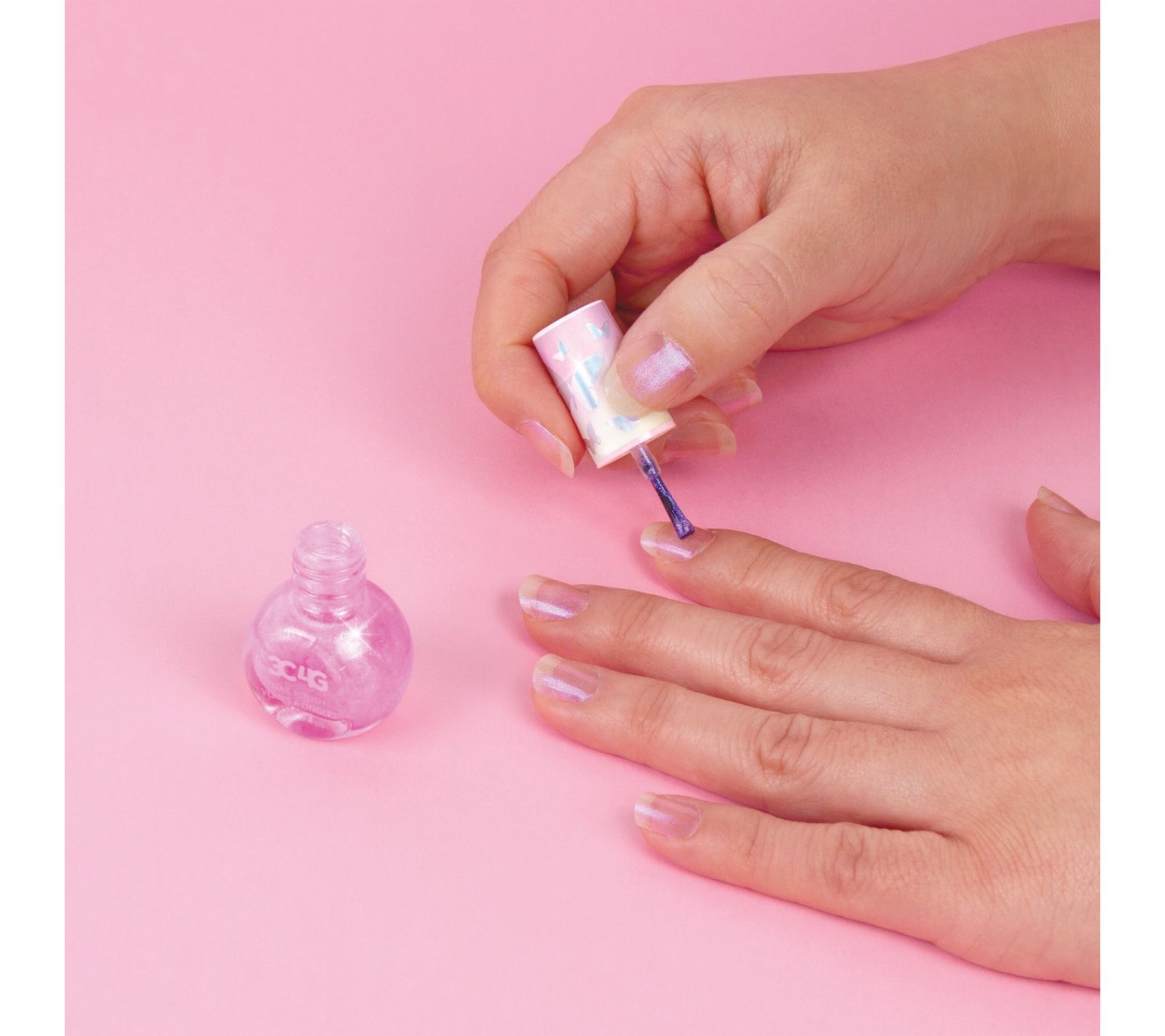Heading off on a trip? This zip-up kids travel and makeup case helps make packing easy and fun. It includes a lip gloss tube, pink nail polish, a four-color eyeshadow palette, plus a zippered pouch with empty bottles for storing shampoo, conditioner, or other favorites. The handy travel jars can also hold jewelry or barrettes, so everything stays organized wherever you go.