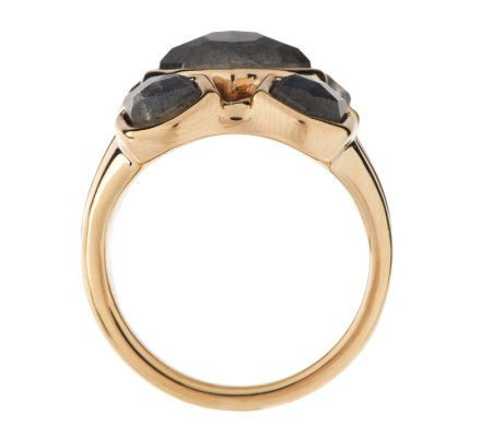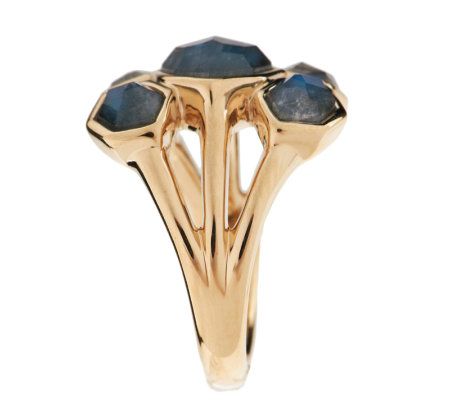 Three Row Faceted Labradorite Doublet Ring 14K Gold