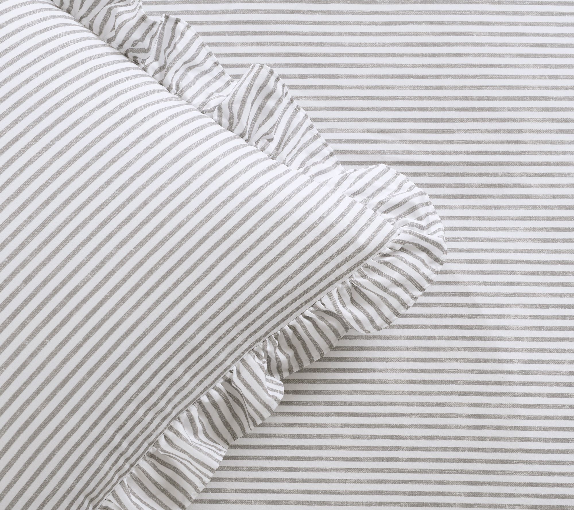 • Pinstripe pattern with ruffled edge