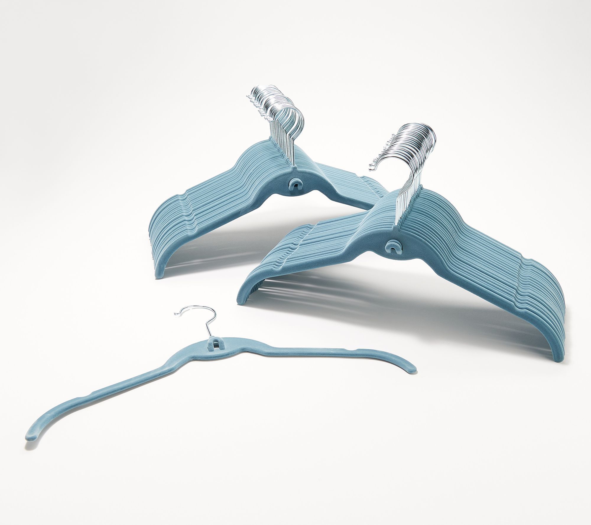 Keep your clothes neat and tidy with this set of sturdy hangers. Slim construction and a cascading hook design helps save space in your closet. From Tidy & Co.