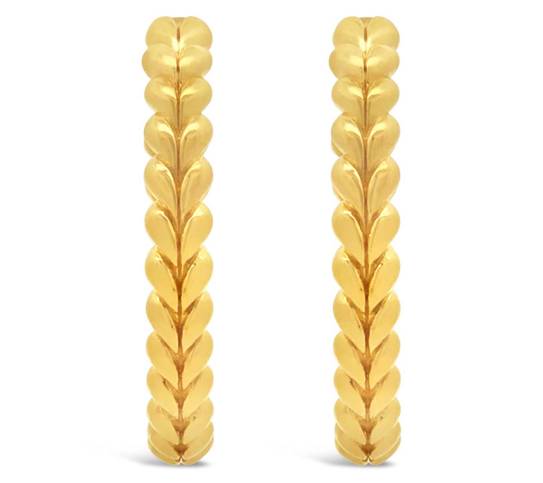 Ready for a style refresh? These oval herringbone hoop earrings are a chic update to your everyday look, combining the shine of 14K yellow gold-clad sterling silver with a sleek silhouette. Their subtle movement and classic design add a touch of sophistication to brunch with friends or evenings out. From Tiffany Kay.