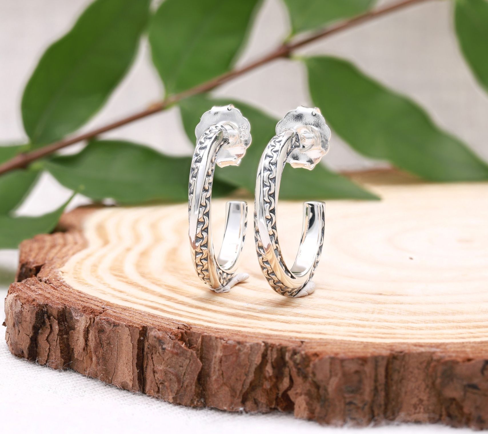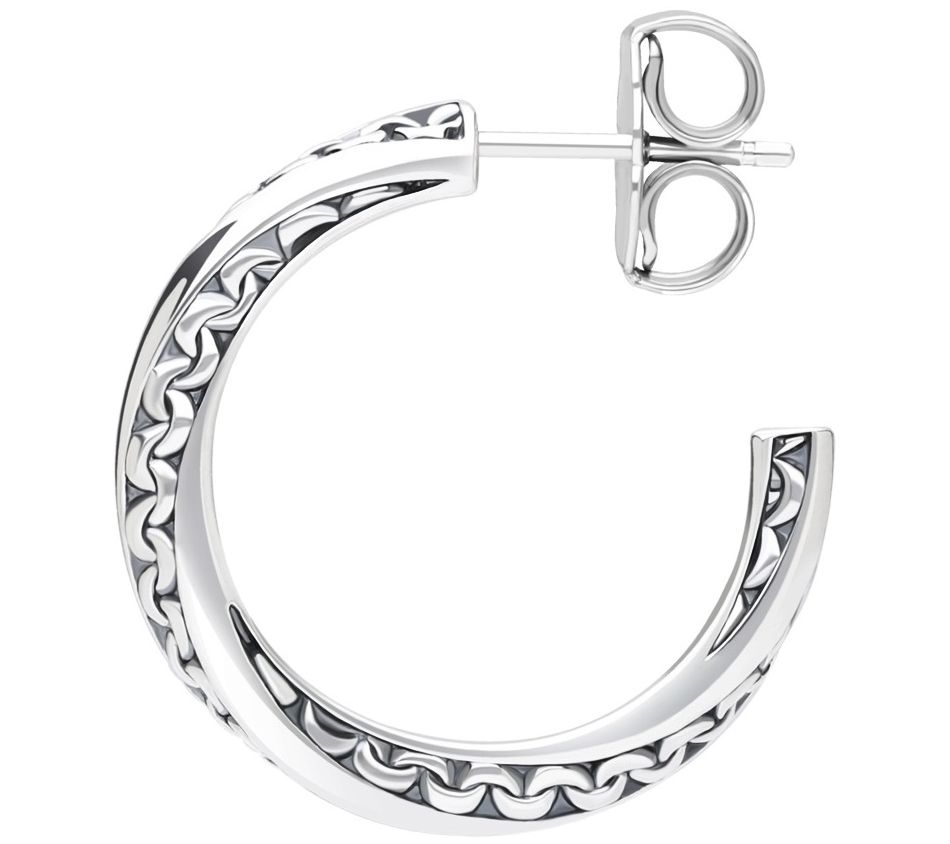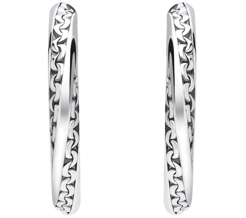 • Mix of purl-knit texture and high polish wrapped around hoops