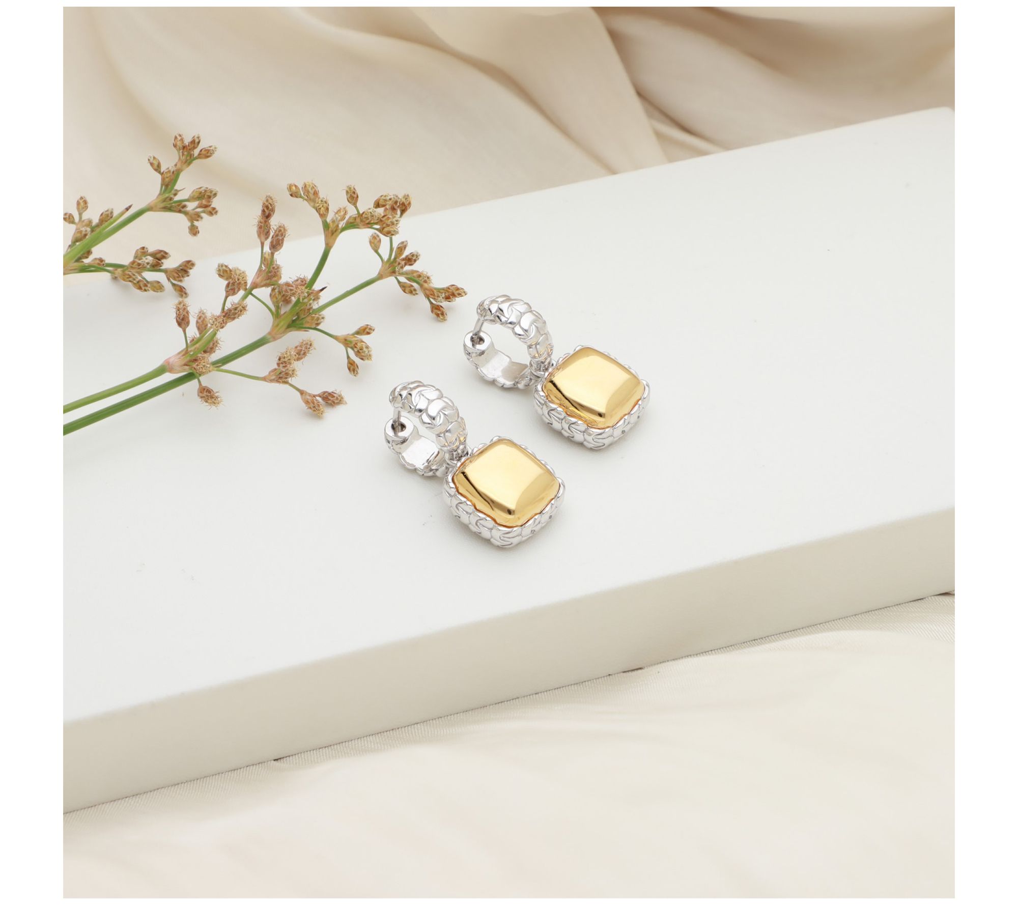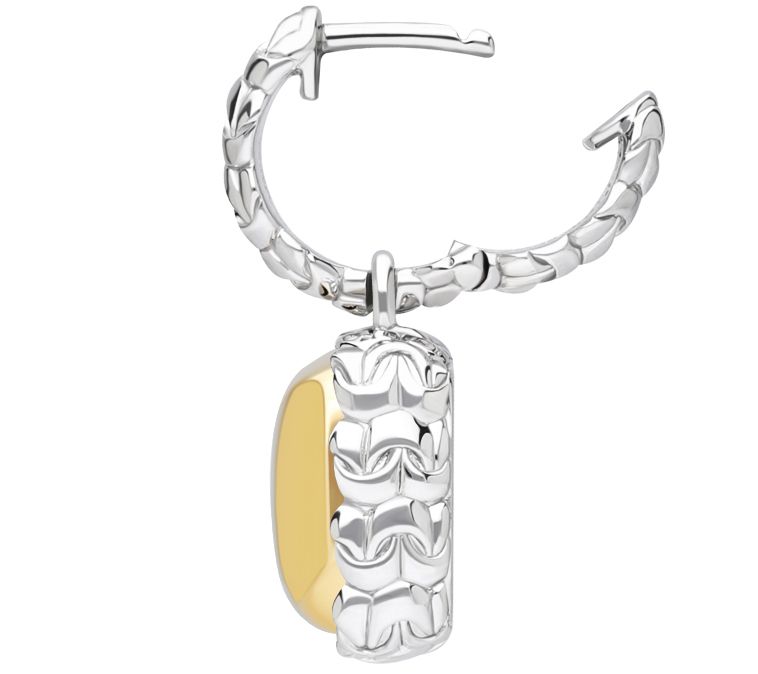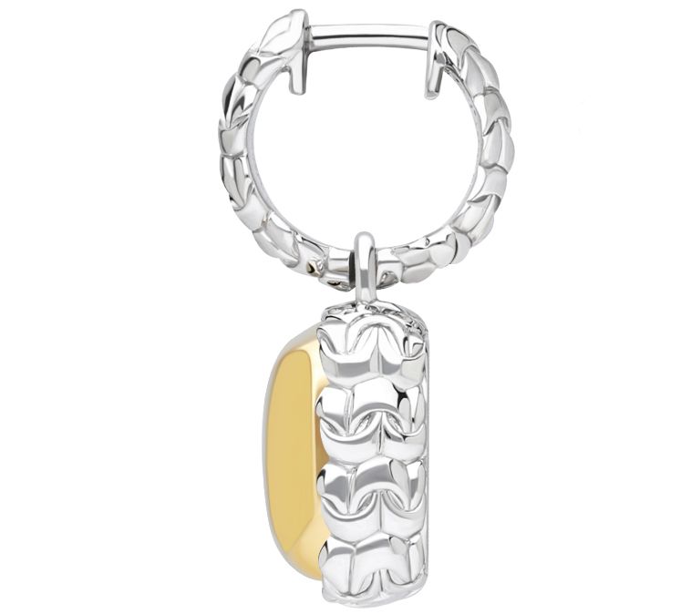 • Sterling silver purl-knit textured earring with 14K yellow gold-plated center