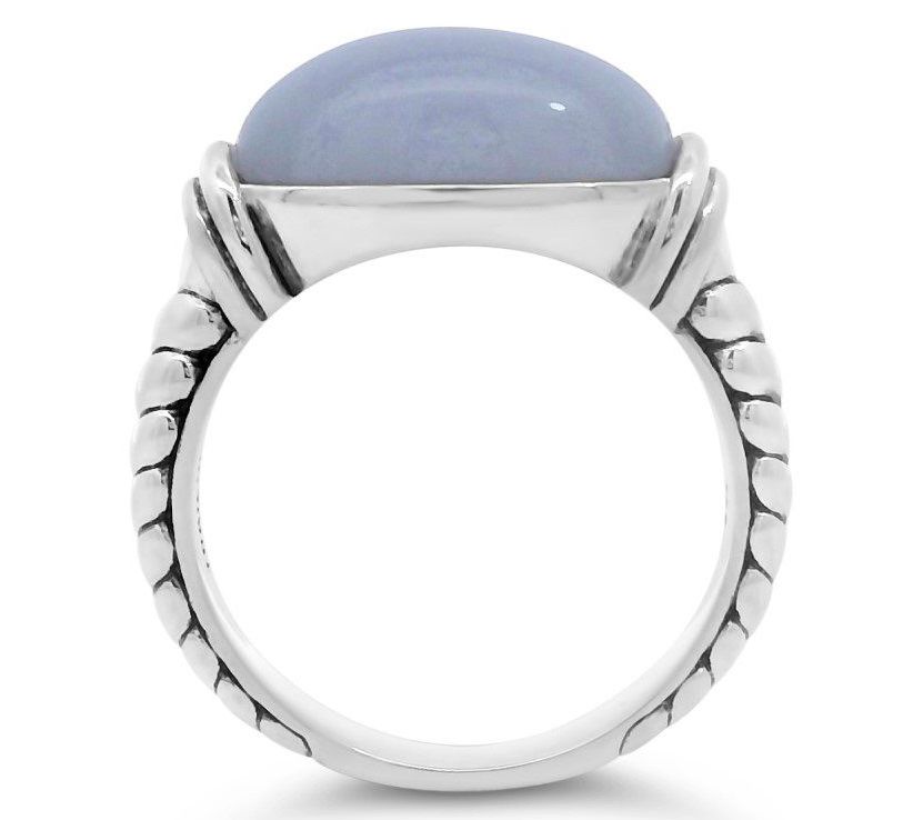 Enhance your collection with this modern classic from Tiffany Kay Studio. The sterling silver ring features a captivating blue lace agate cabochon stone set in a unique herringbone texture. Ideal for adding a touch of elegance to any outfit, this ring seamlessly combines timeless design with contemporary flair. From Tiffany Kay Studio.