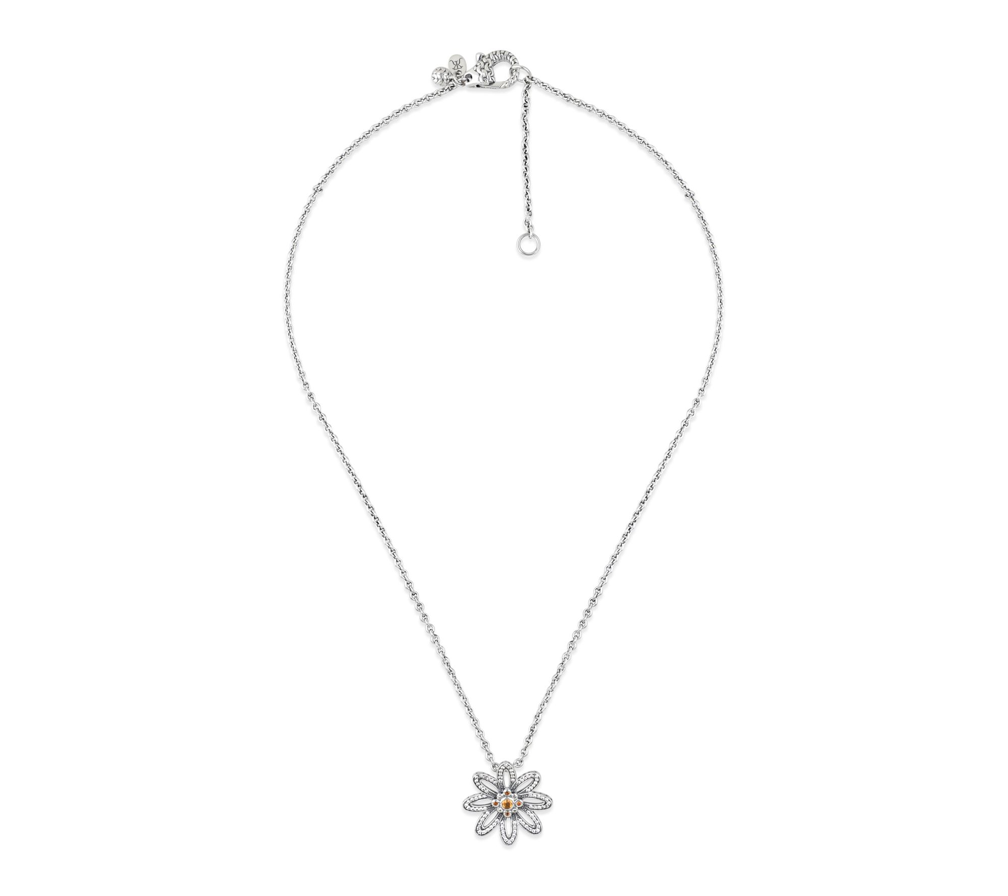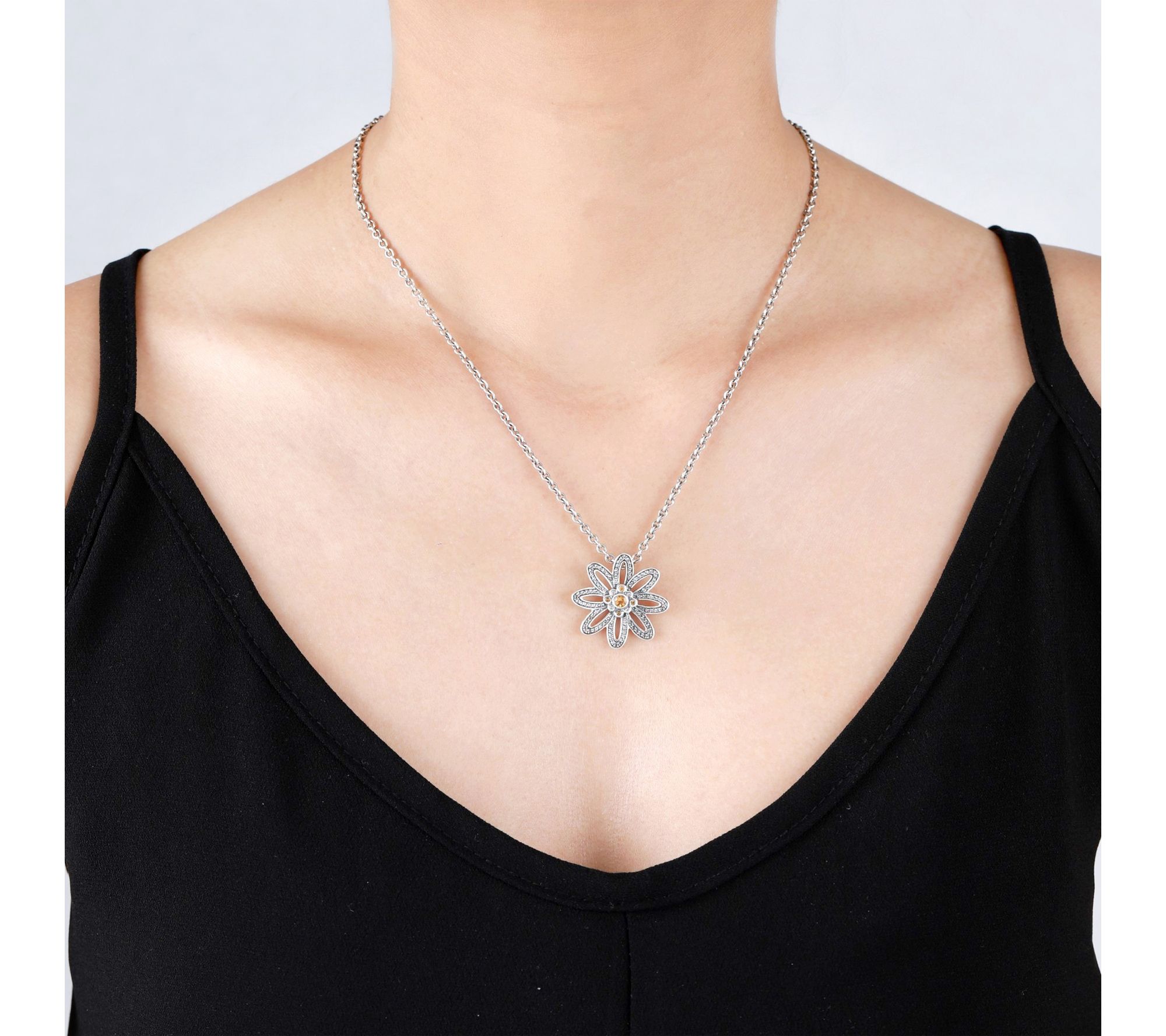 Set the scene for spring with this sterling silver necklace featuring a floral pendant adorned with sparkling citrine and white topaz gemstones. Its intricate purl-knit texture and elegant cable link chain add a touch of whimsy to both casual and dressy outfits, making every day bloom with style. From Tiffany Kay Studio.
