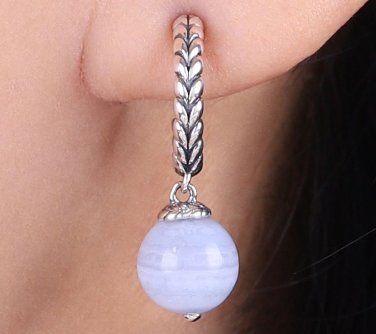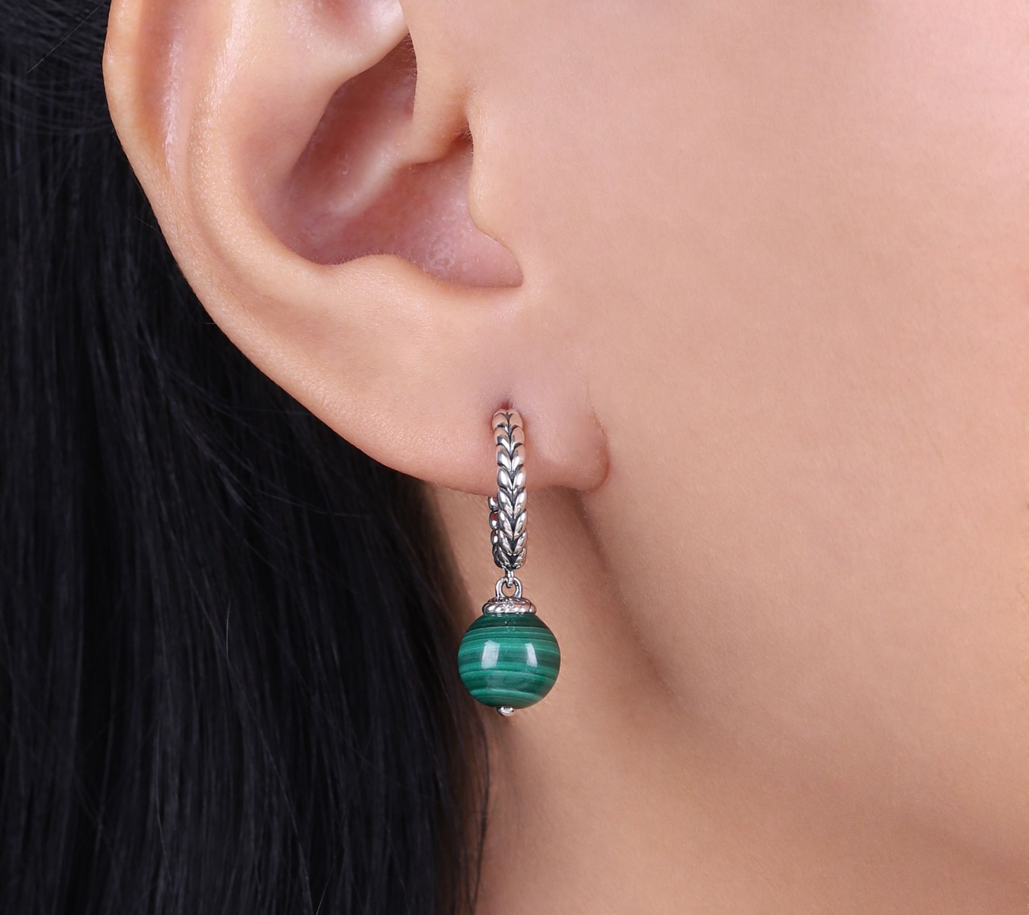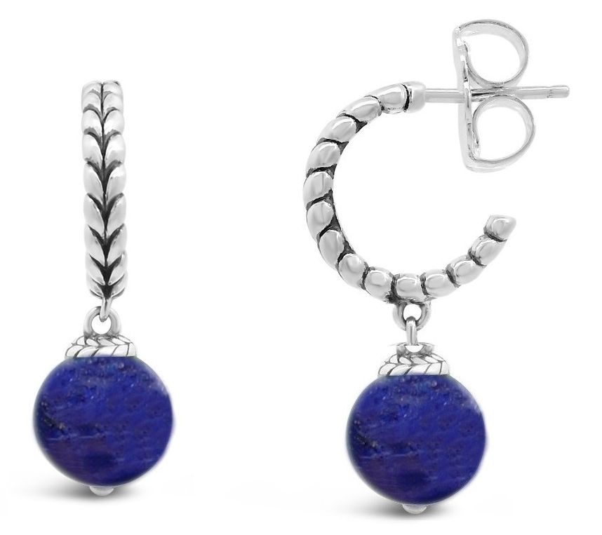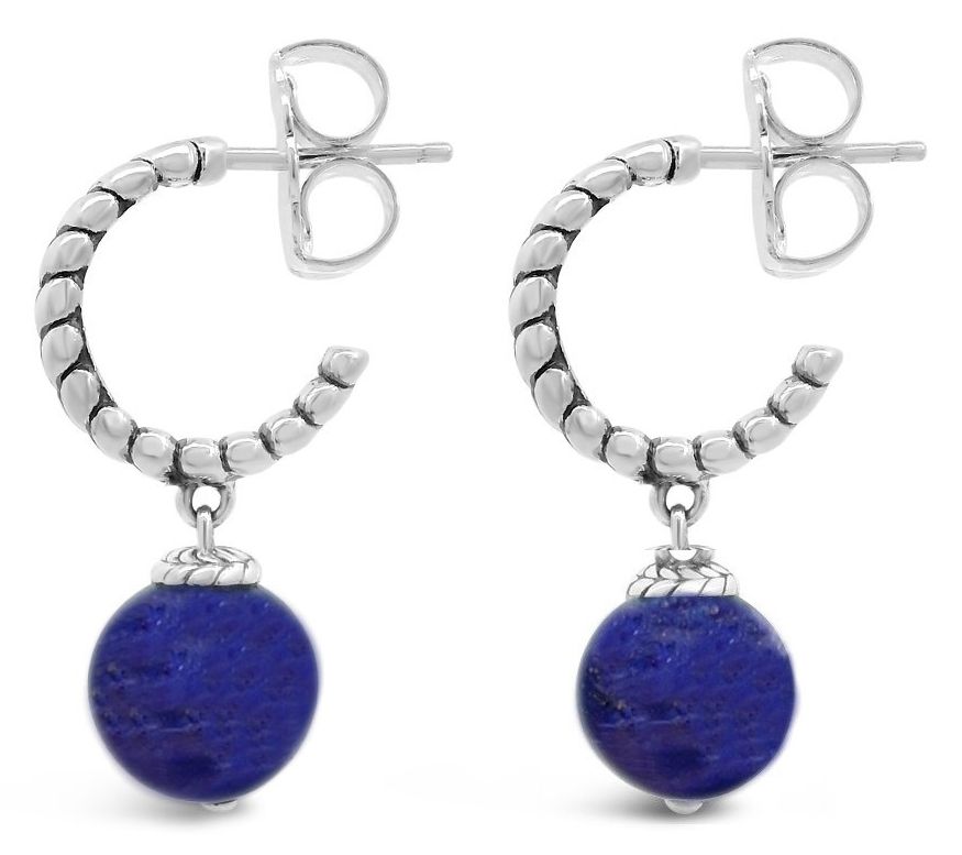 Textured hoop design with round-cut gemstone bead drop