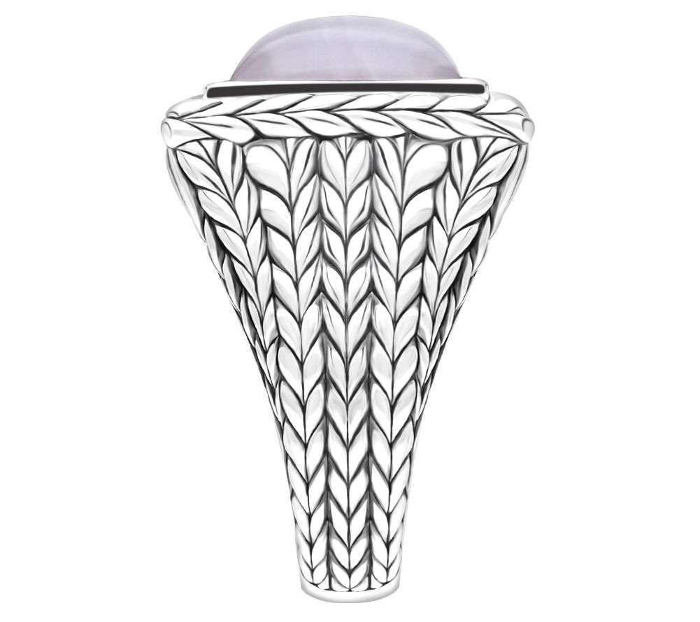 Texture? Color? Shine? Yep, this gorgeous ring checks all the boxes with its pinched herringbone pattern and brilliant rose quartz stone. From Tiffany Kay.
