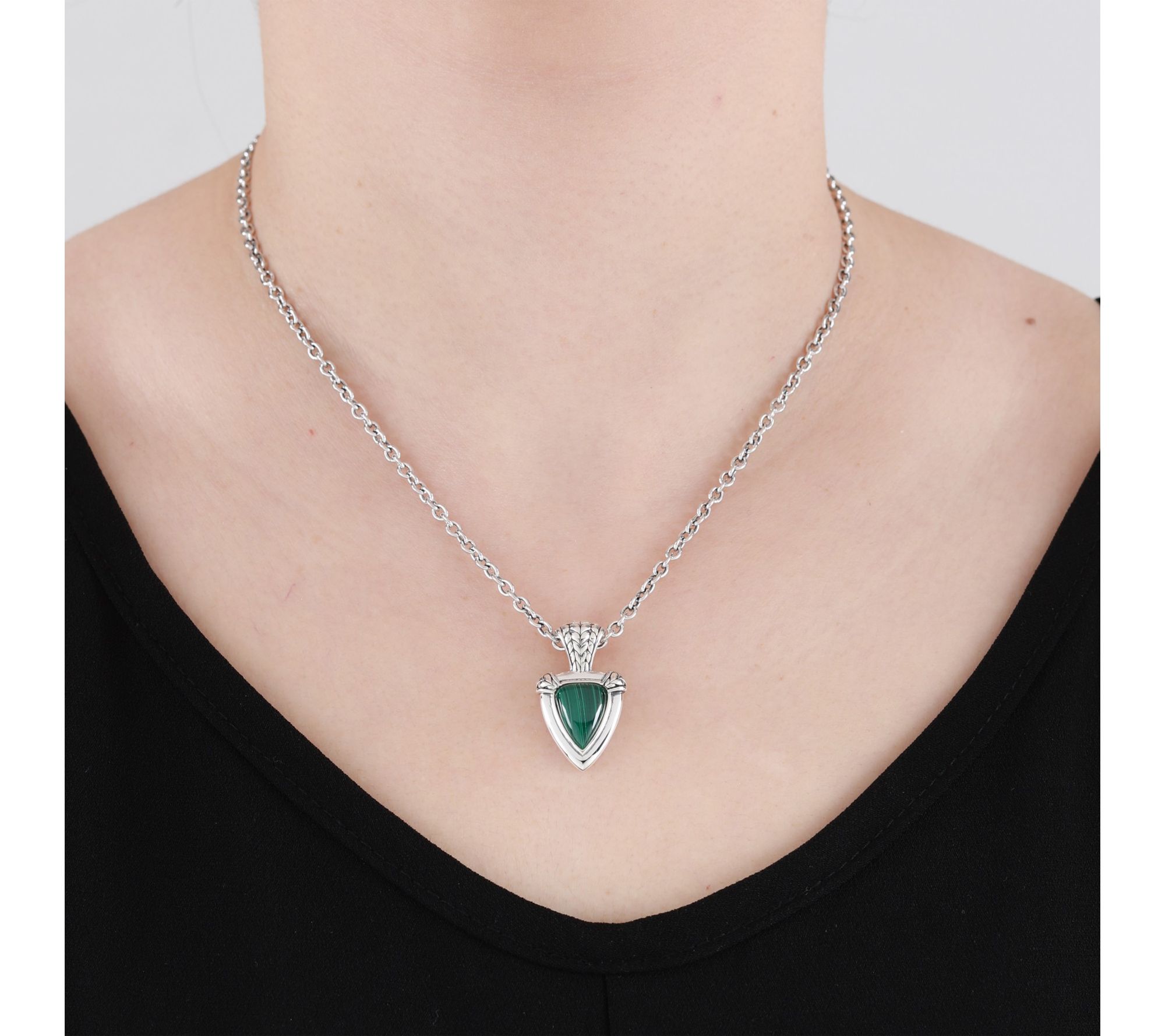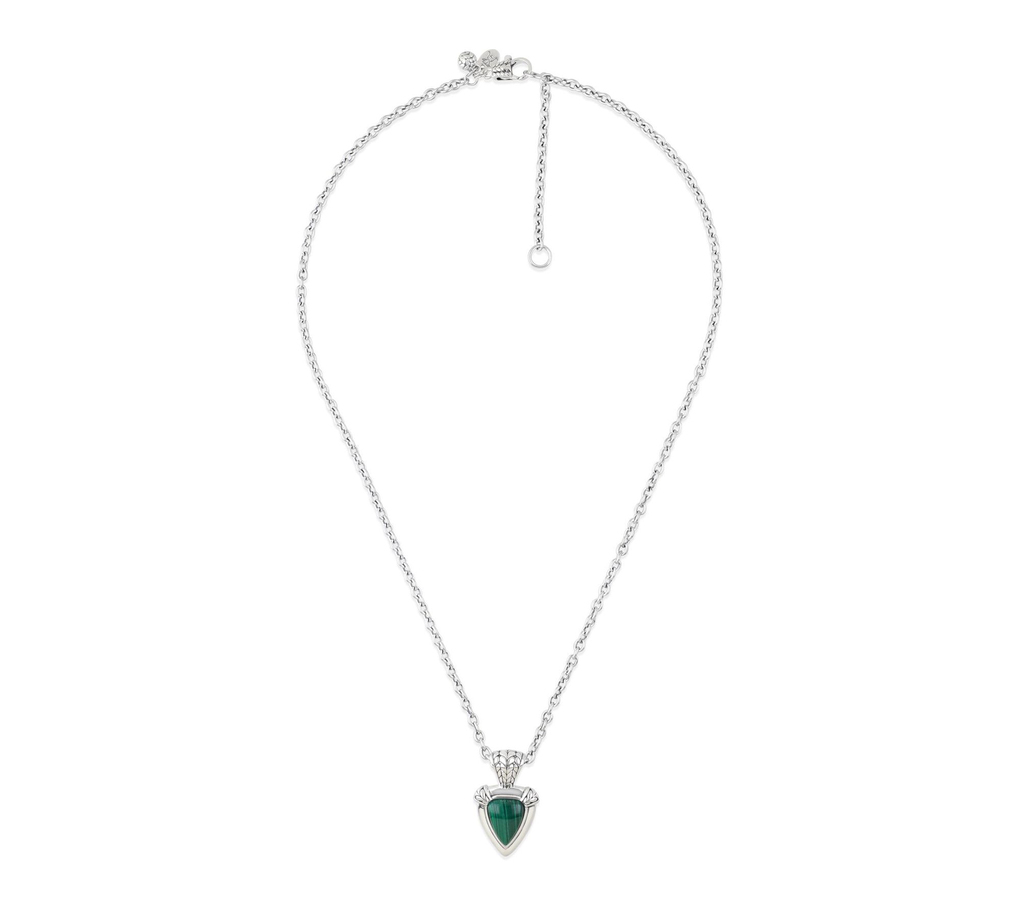 Take your neckline from simple to striking with this malachite pendant in an intriguing shield shape. From Tiffany Kay Studio.