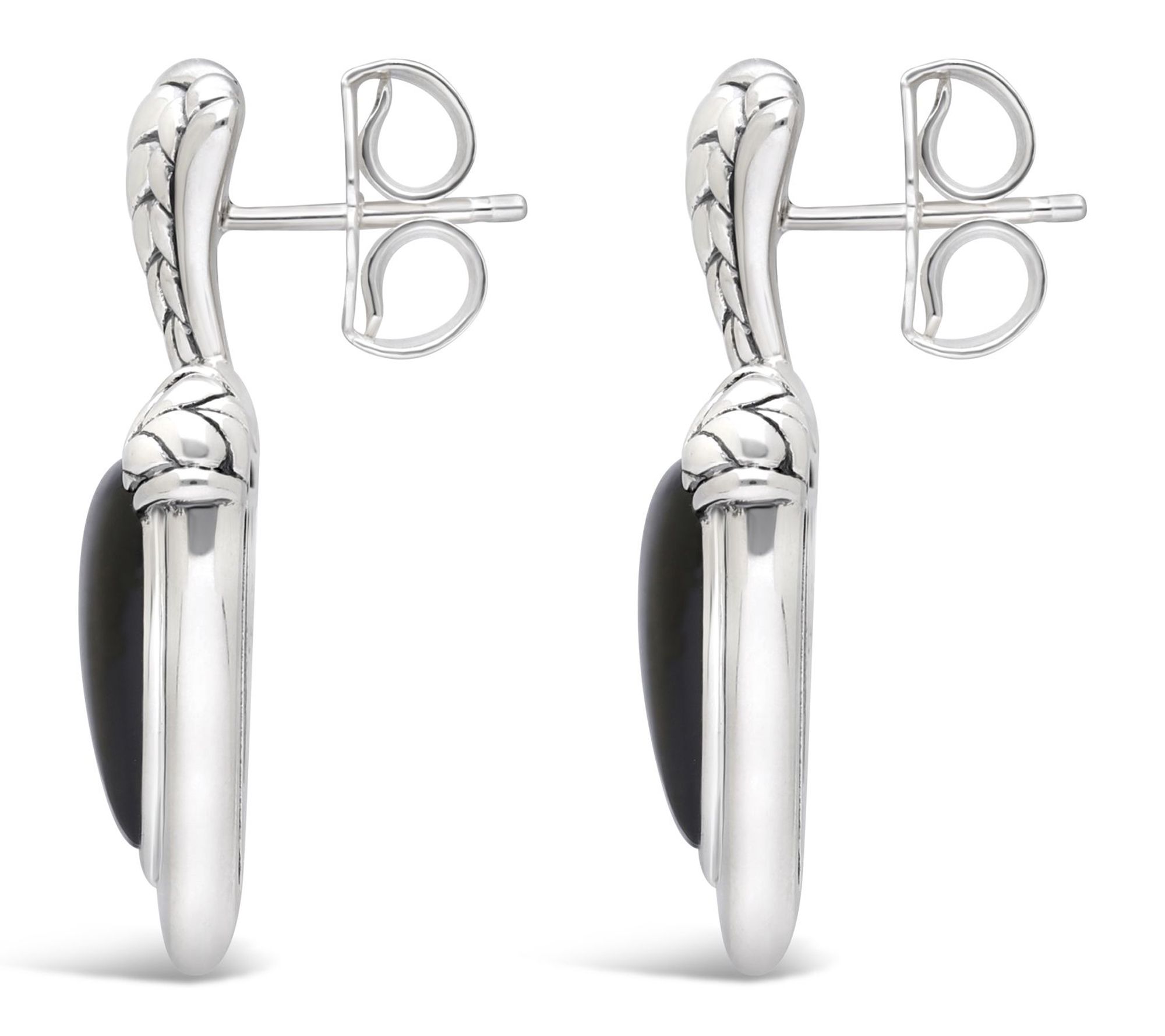 Oval shield with inlaid black onyx; herringbone accents and top; high-polish finish