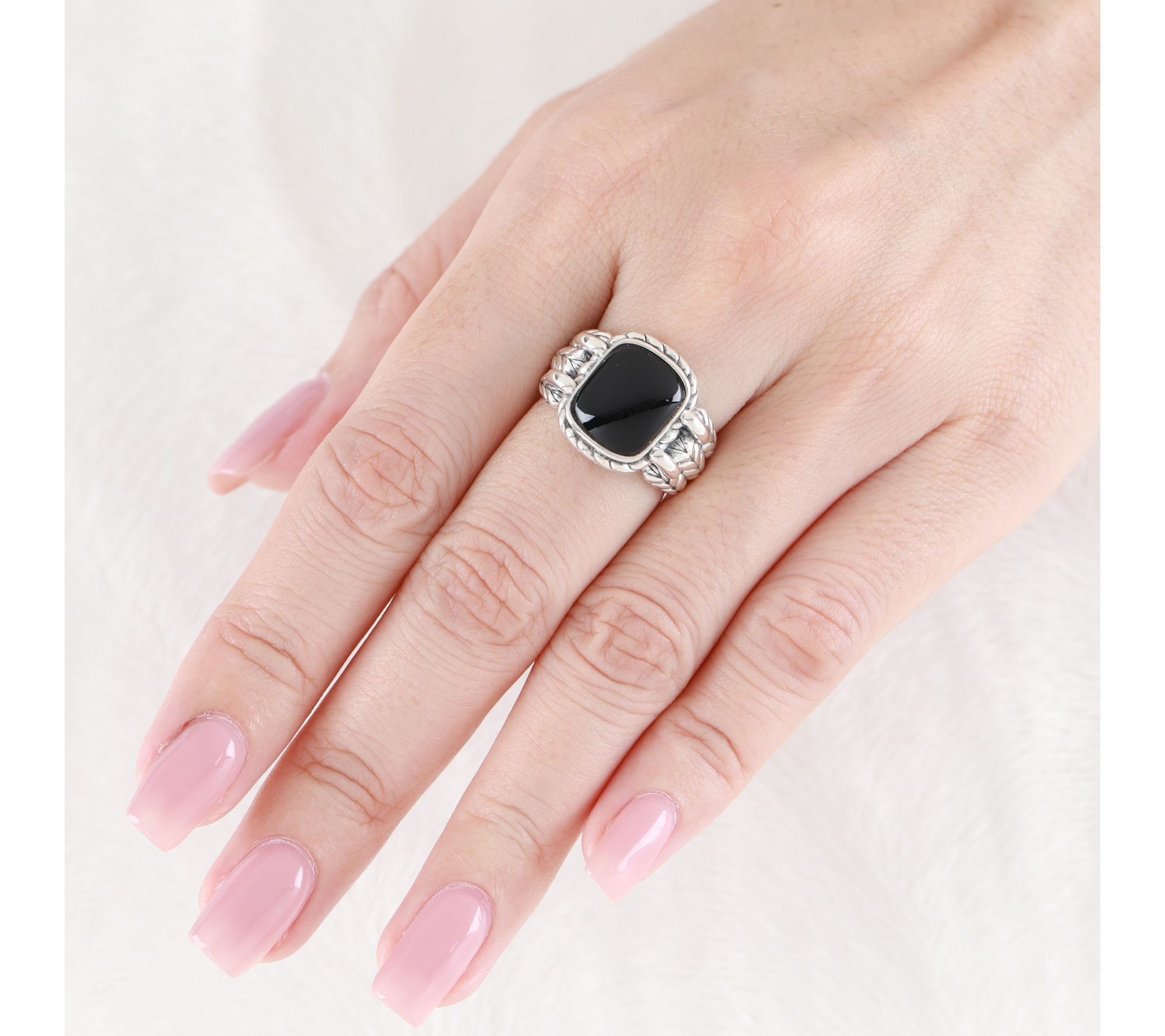 Add a bold accent to your everyday look with this herringbone statement ring, featuring a striking onyx center set in polished sterling silver. Whether paired with a casual ensemble or styled for a night out, its modern lines and dramatic contrast bring effortless sophistication to any occasion. From Tiffany Kay Studio.