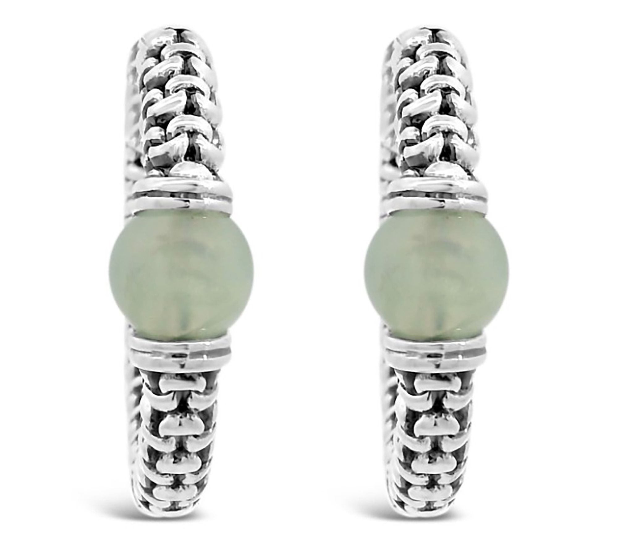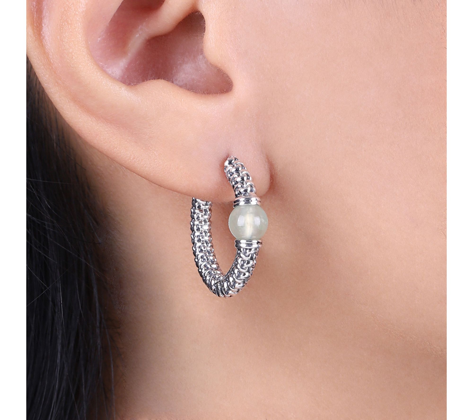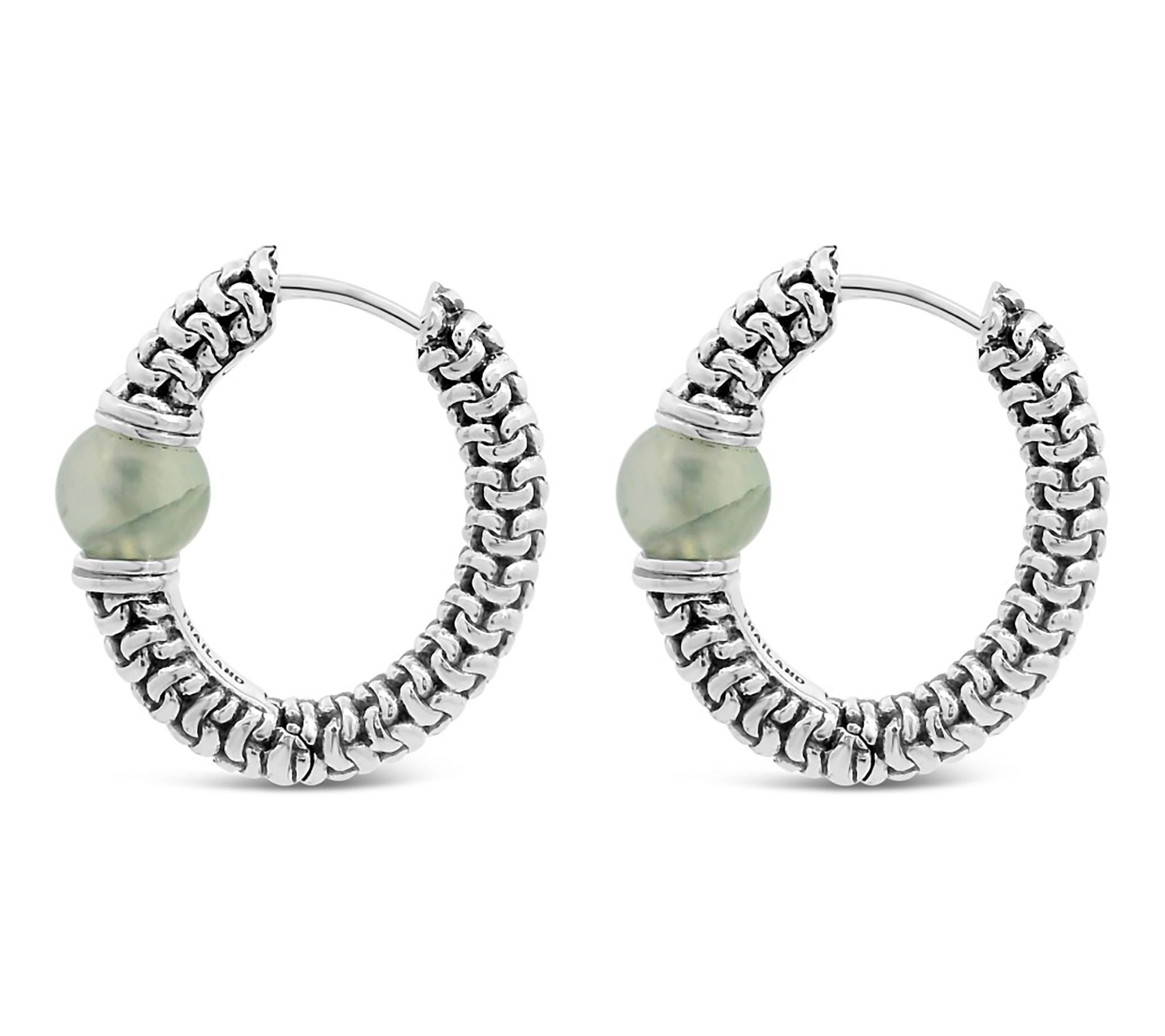 Add a touch of elegance to your everyday look with these Tiffany Kay Studio sterling silver hoop earrings. The unique purl knit texture beautifully complements the genuine prehnite bead at the center, making them a versatile addition to any jewelry collection. From Tiffany Kay Studio.