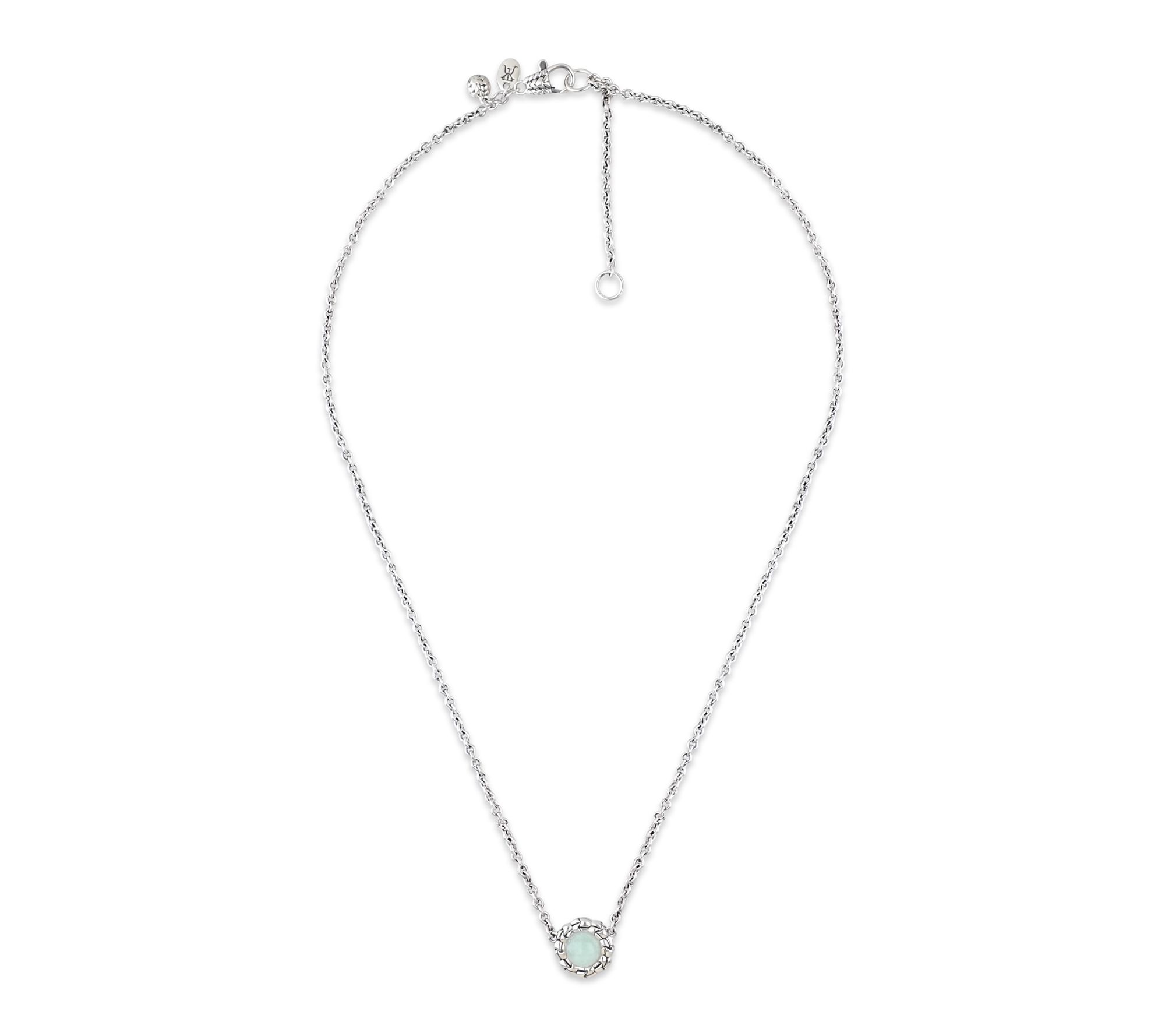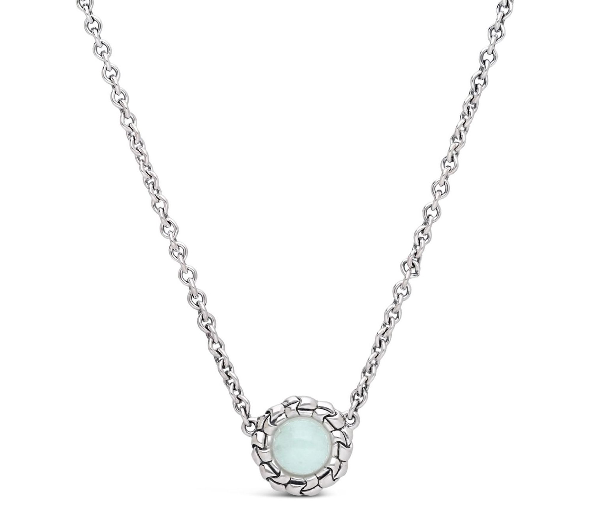 Warm up your look with the serene beauty of this necklace, where a milky aquamarine gemstone rests within a textured purl knit-inspired frame for artisanal charm. The sterling silver pendant hangs from a versatile chain with extender, making it easy to pair with both casual tees and elegant blouses for a refreshing blue accent. From Tiffany Kay Studio.