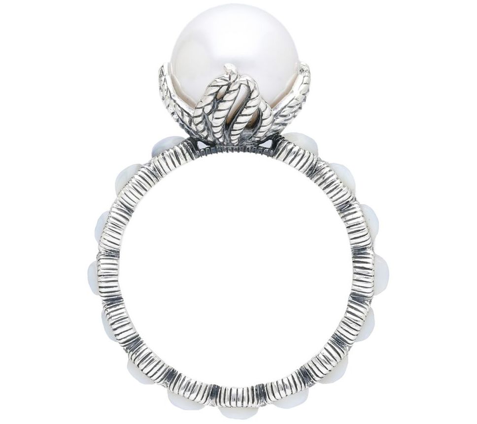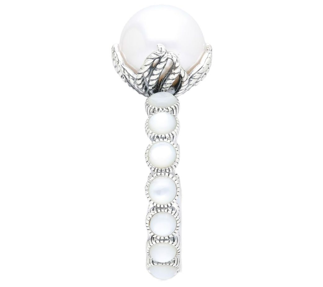 Exude sophistication by slipping on this ornate ring featuring a shimmering cultured freshwater pearl center surrounded by a band set with mother-of-pearl. From Tiffany Kay.